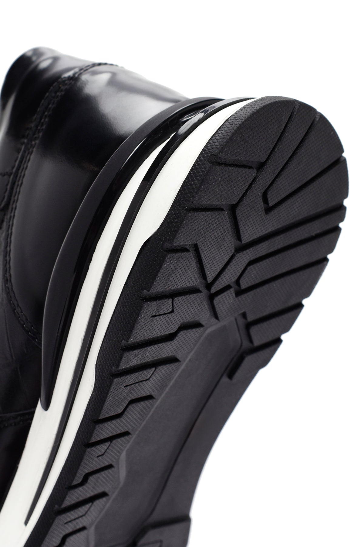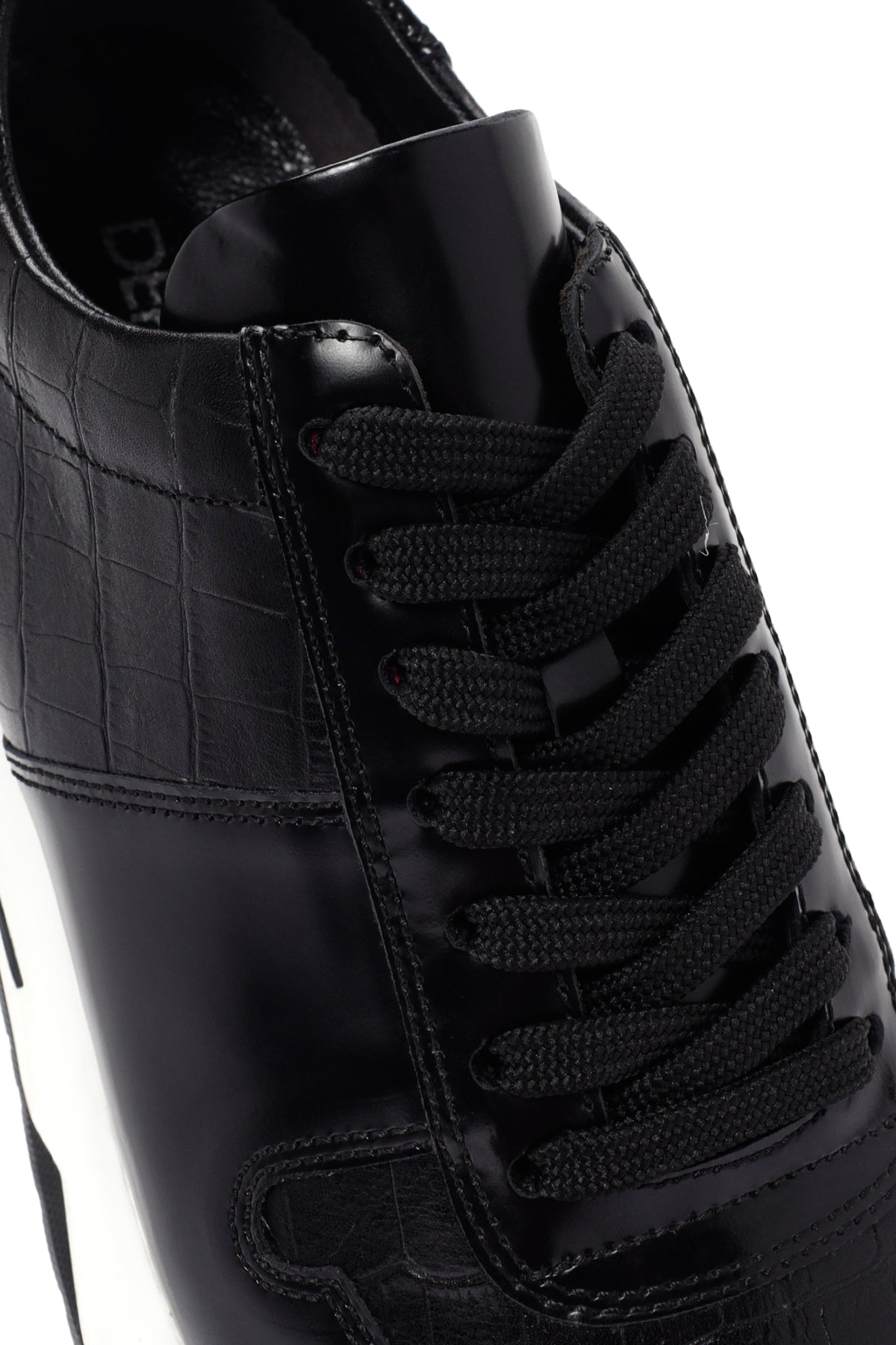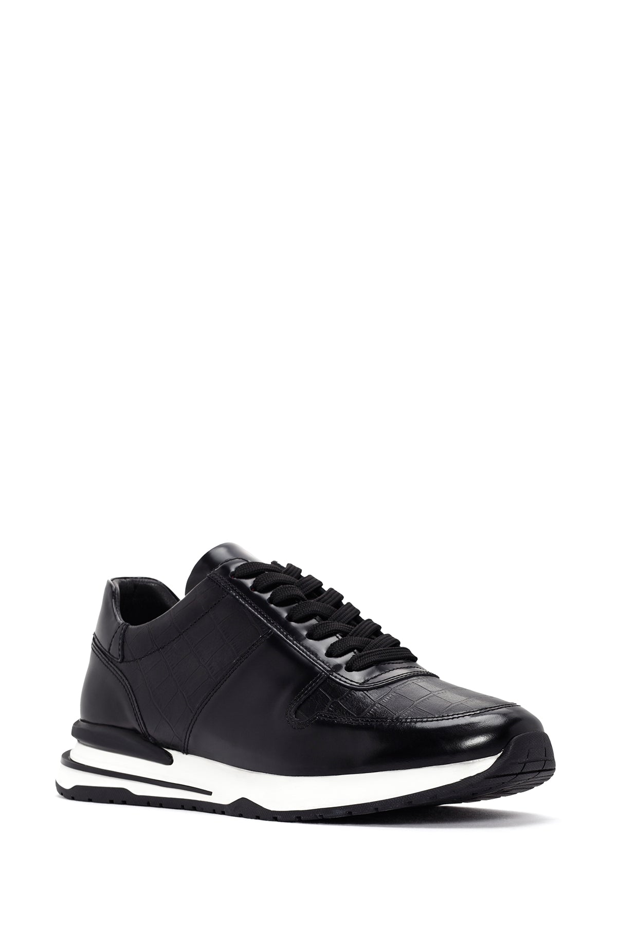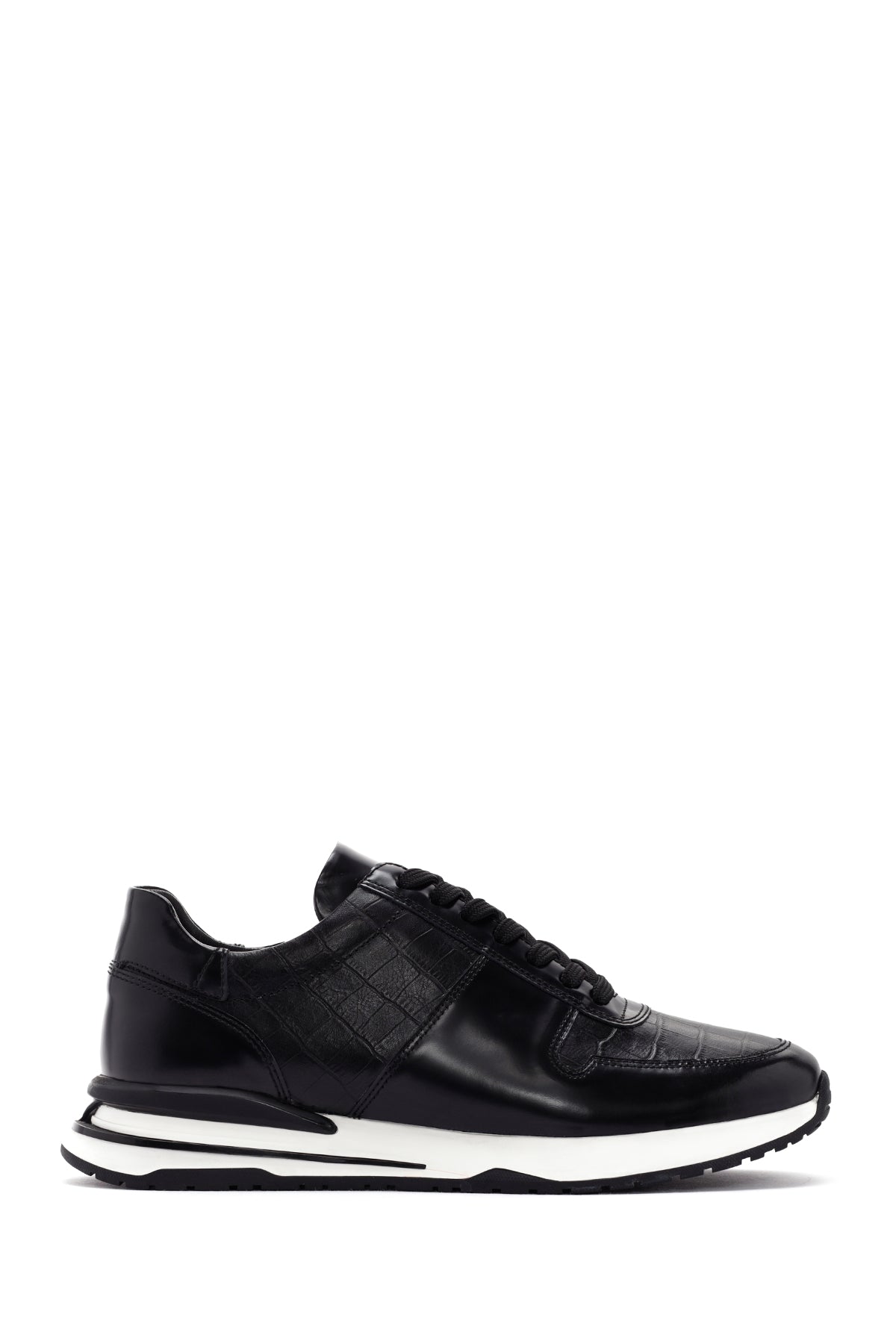 Erkek Siyah Kroko Desenli Bağcıklı Kalın Tabanlı Deri Sneaker