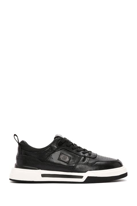 Erkek Siyah Bağcıklı Kalın Tabanlı Deri Sneaker