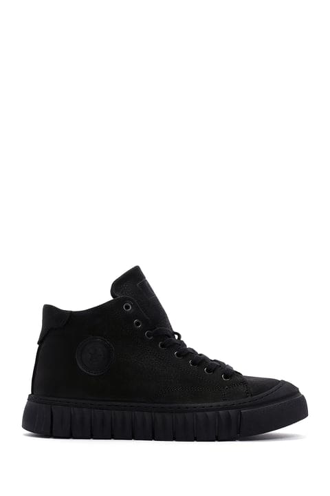 Erkek Siyah Deri Fermuarlı Casual Nubuk Deri Bot