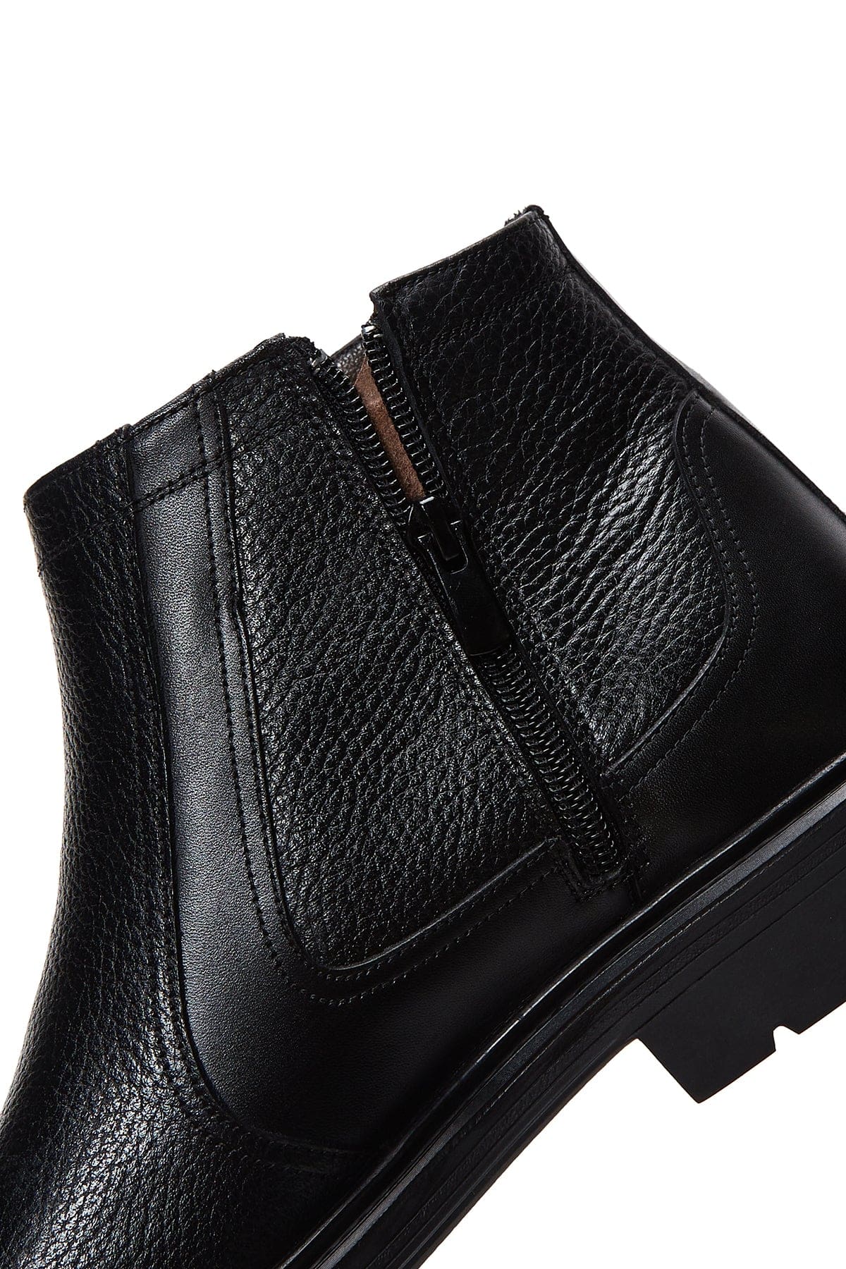 Erkek Siyah Fermuarlı Deri Casual Bot