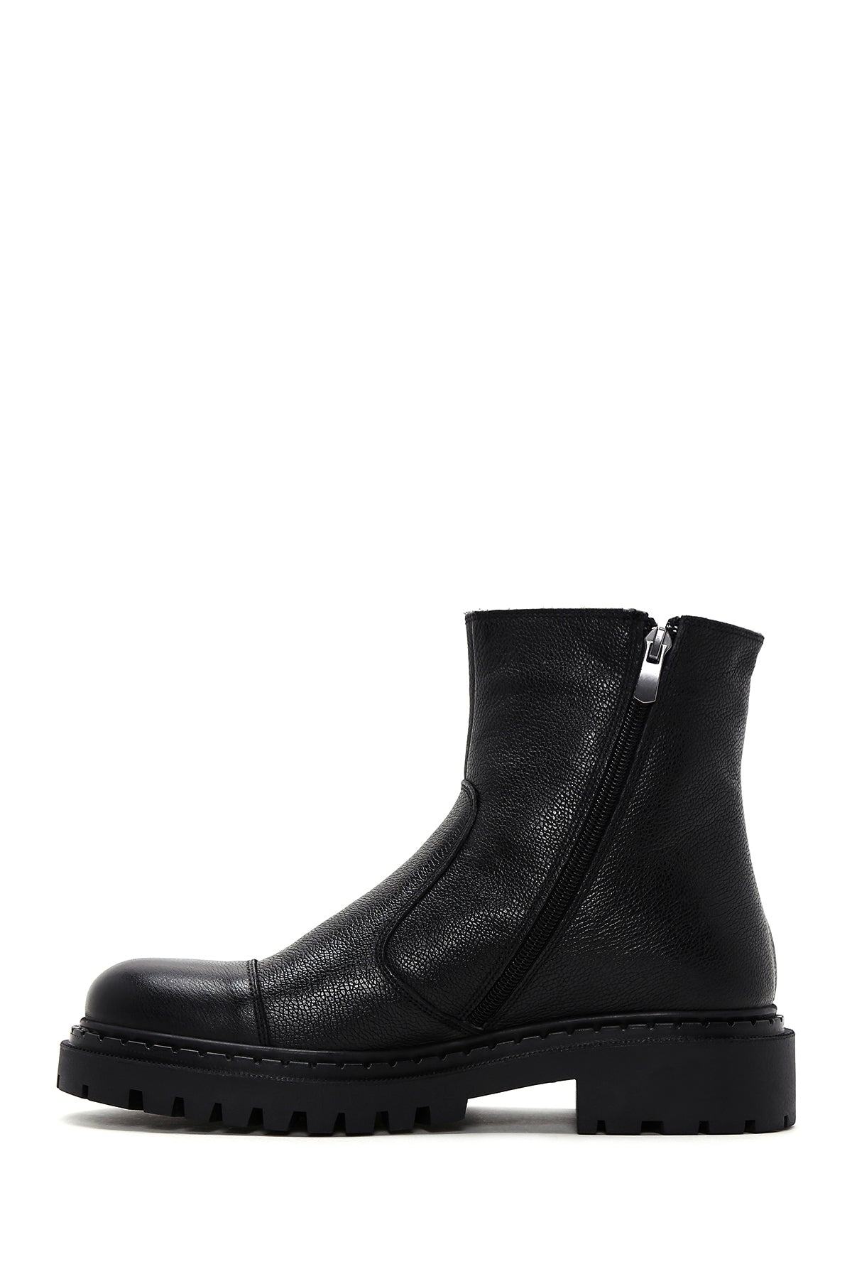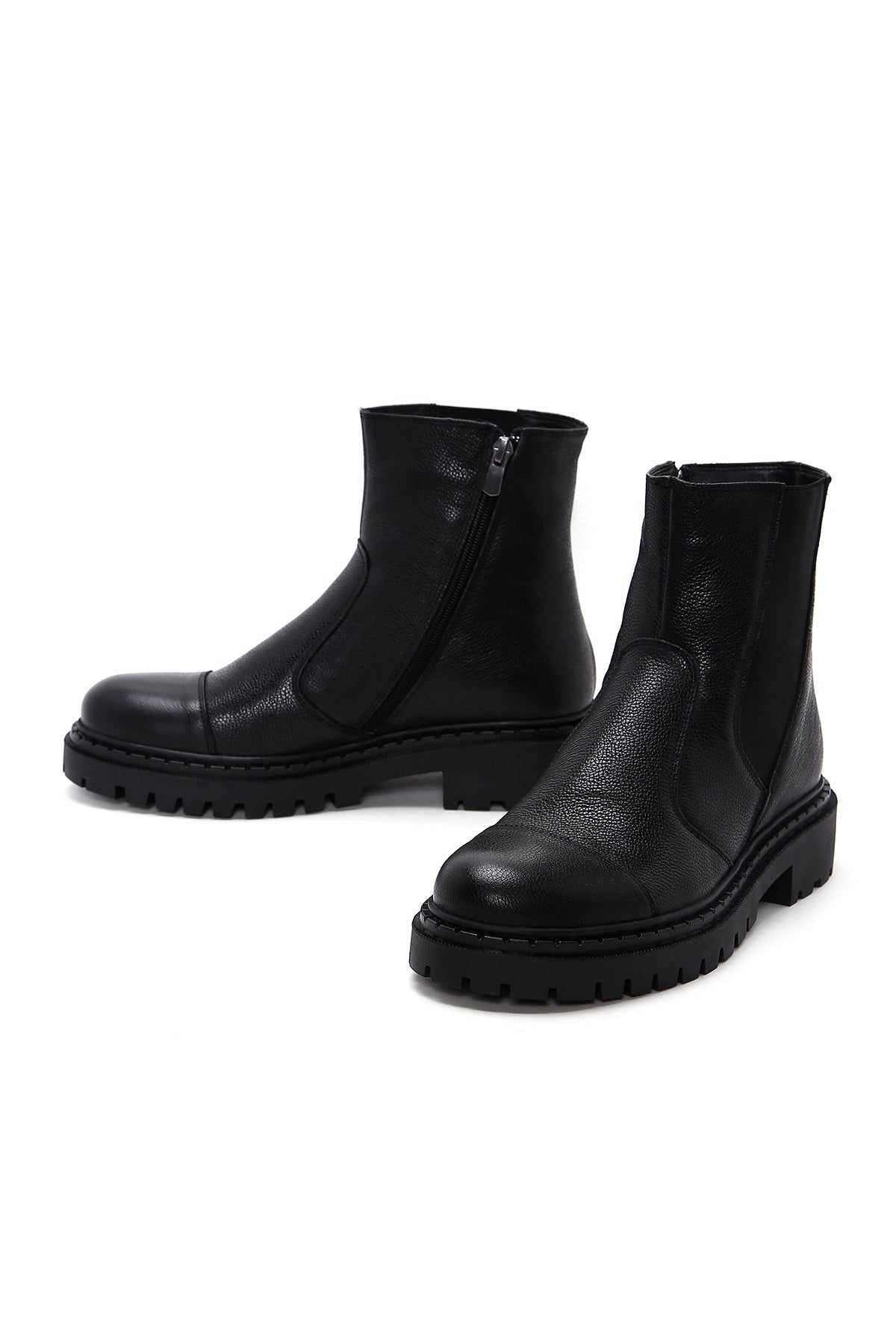 Erkek Siyah Fermuarlı Deri Casual Bot