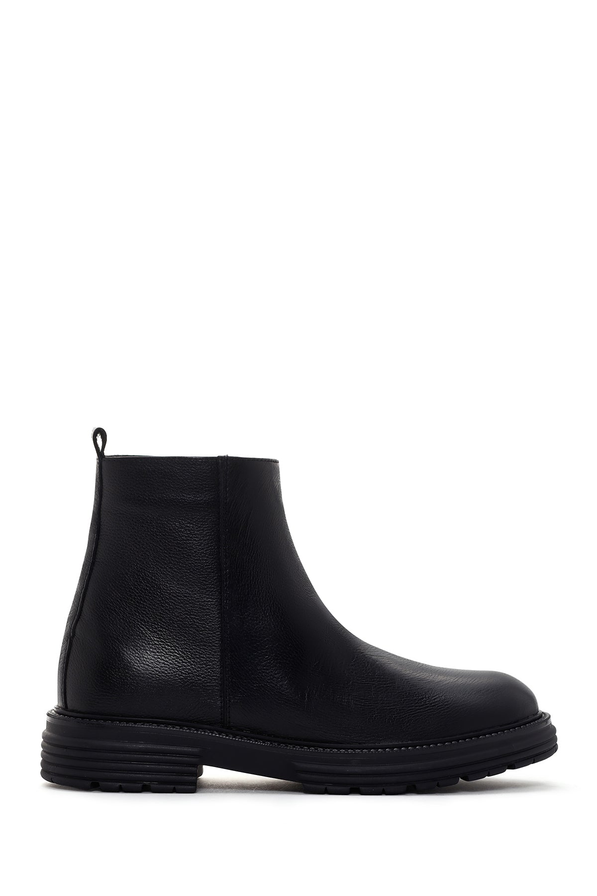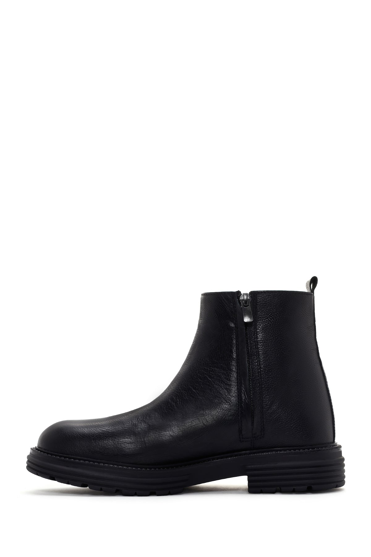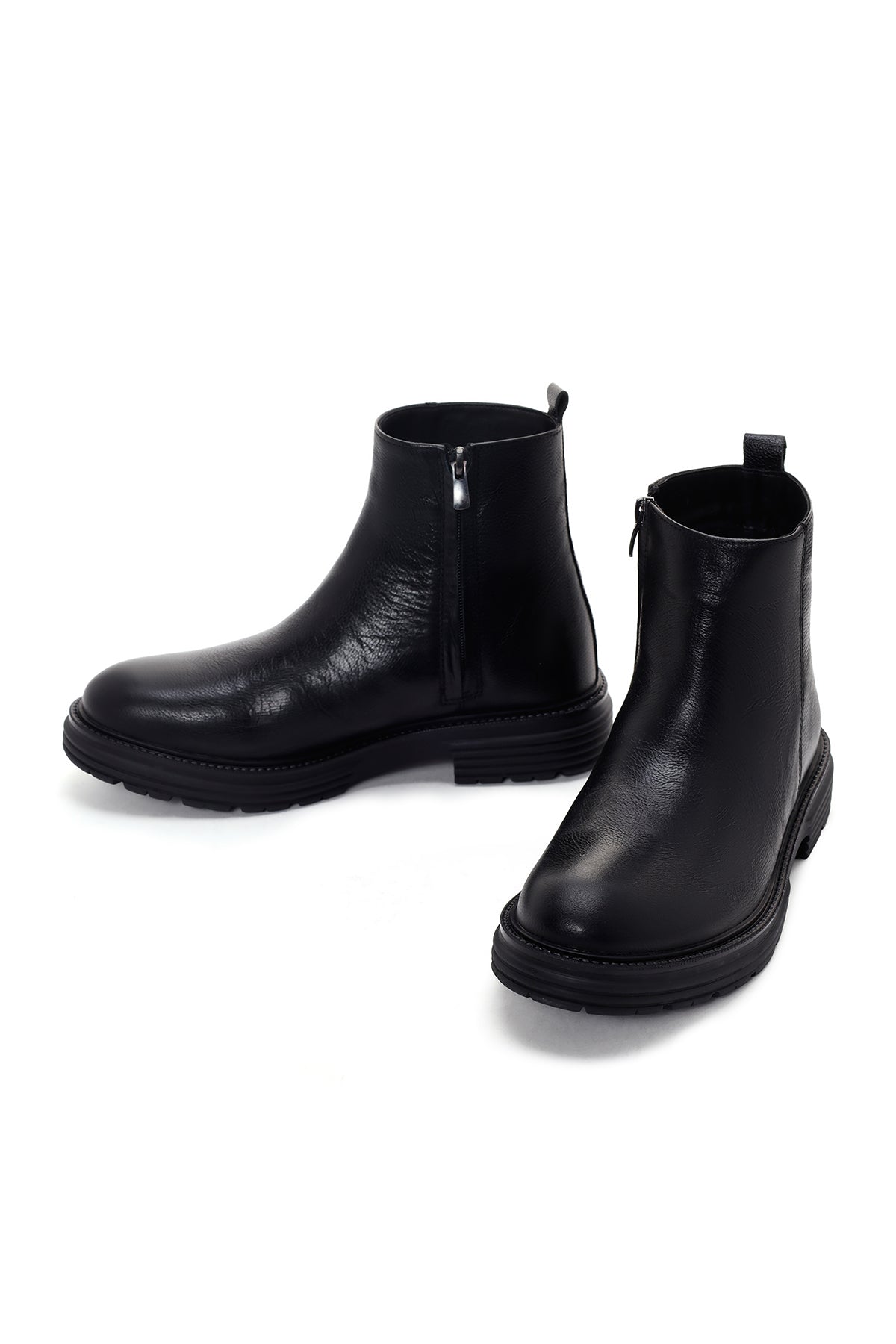 Erkek Siyah Fermuarlı Deri Casual Bot