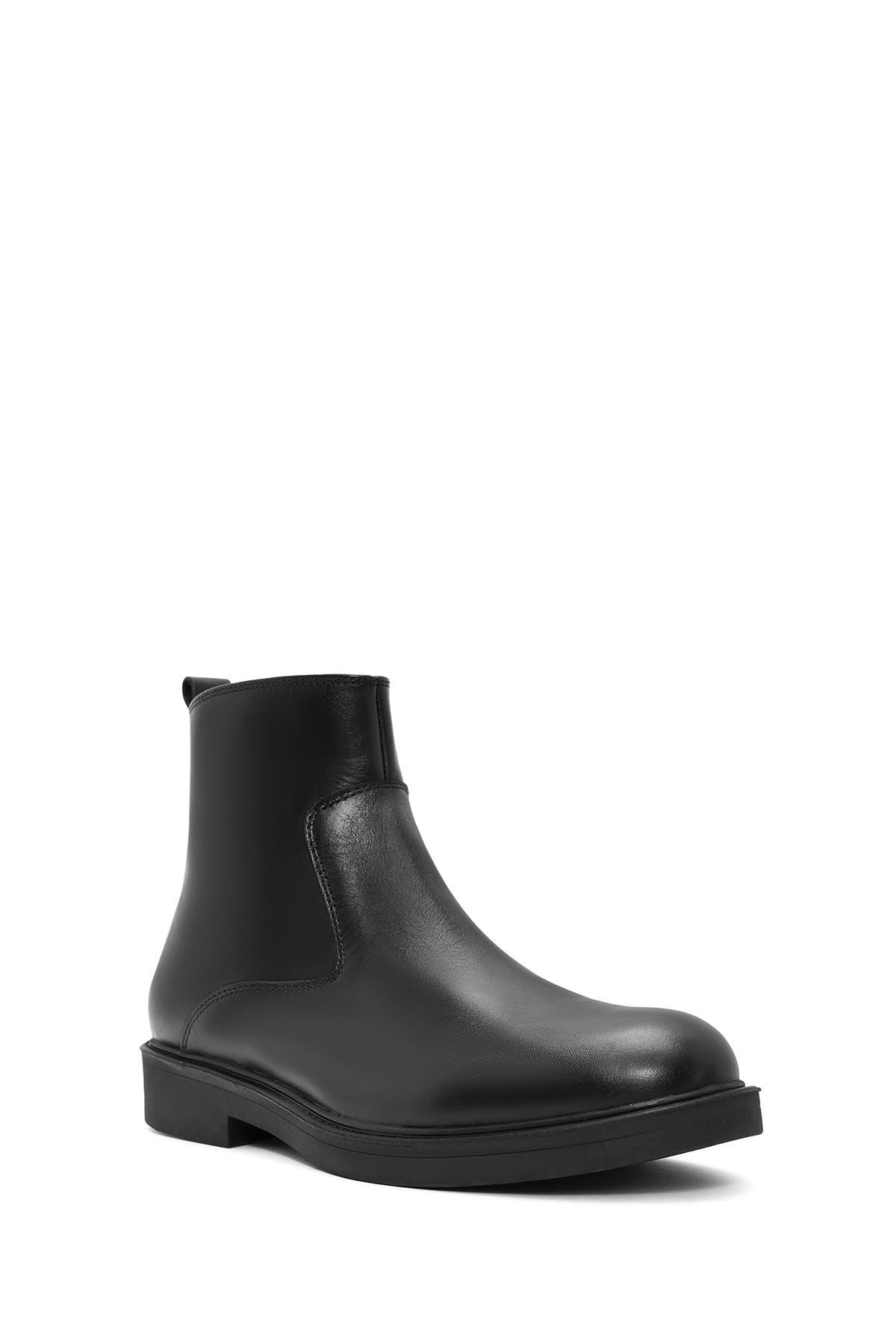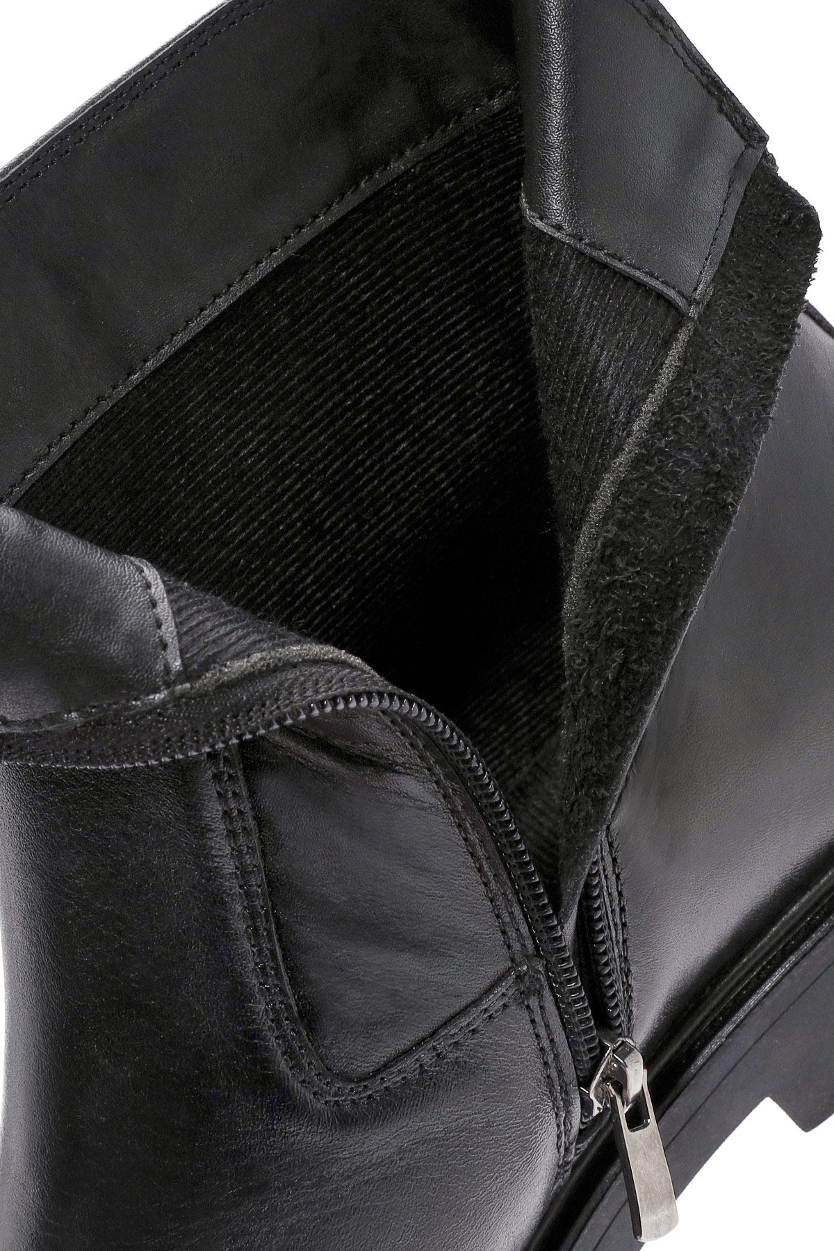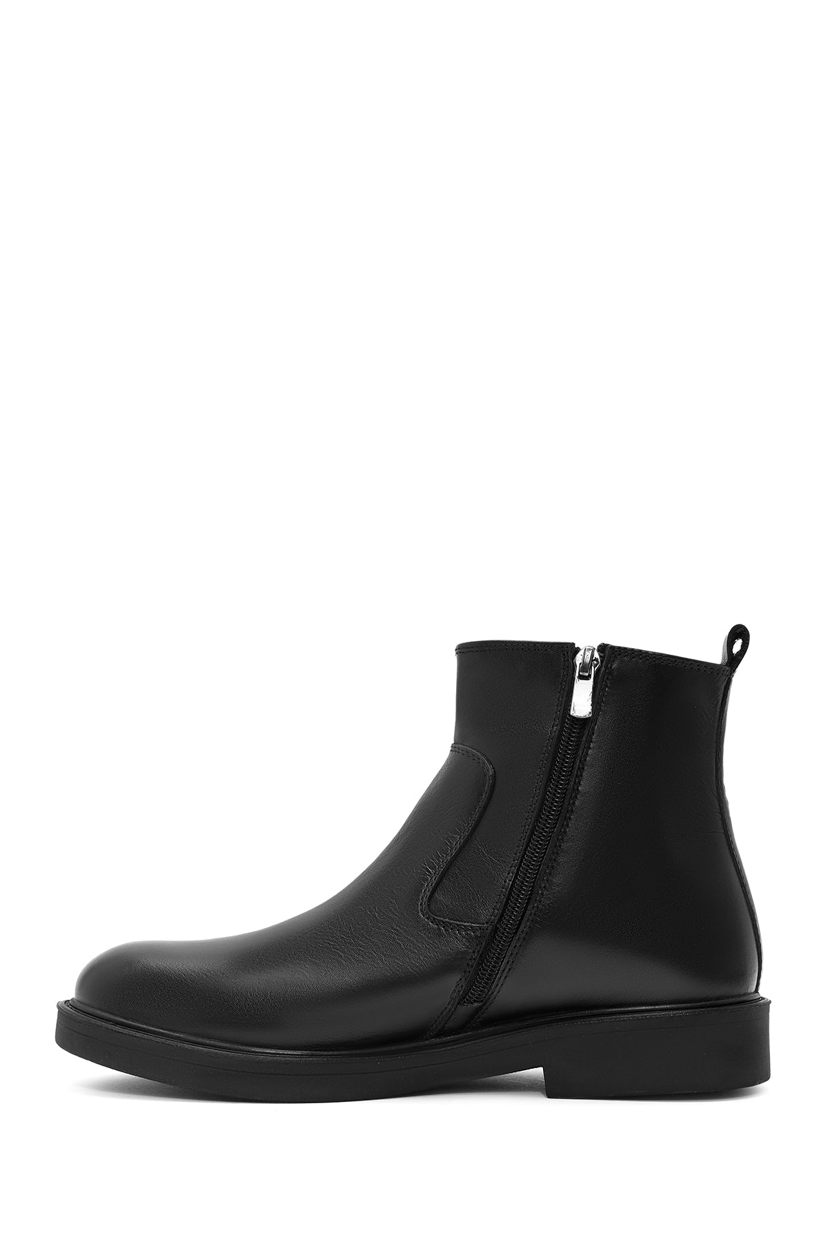 Erkek Siyah Fermuarlı Deri Casual Bot