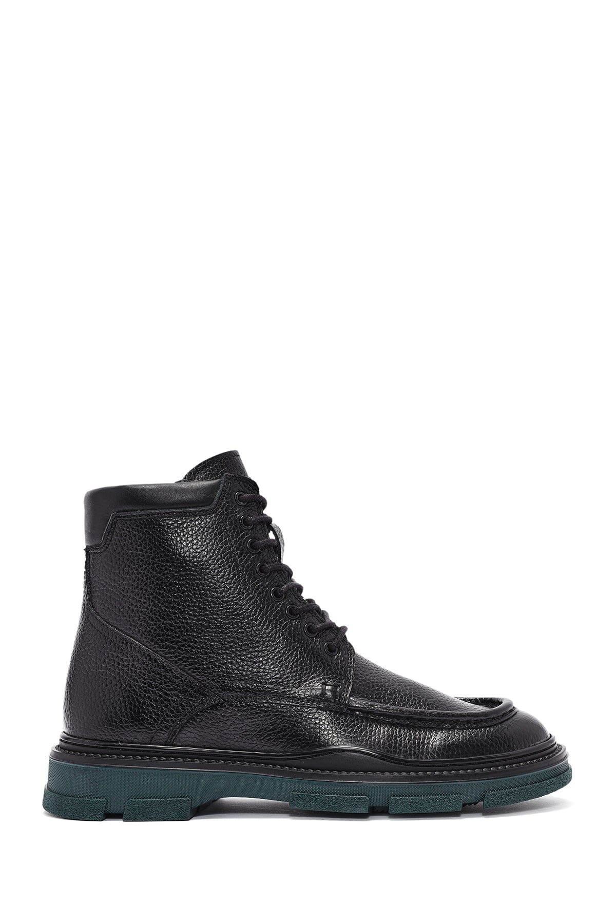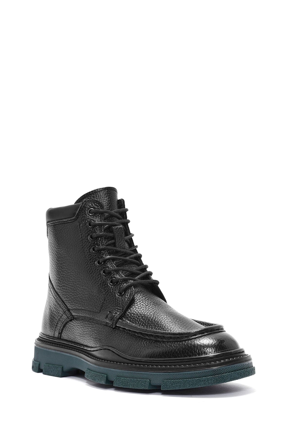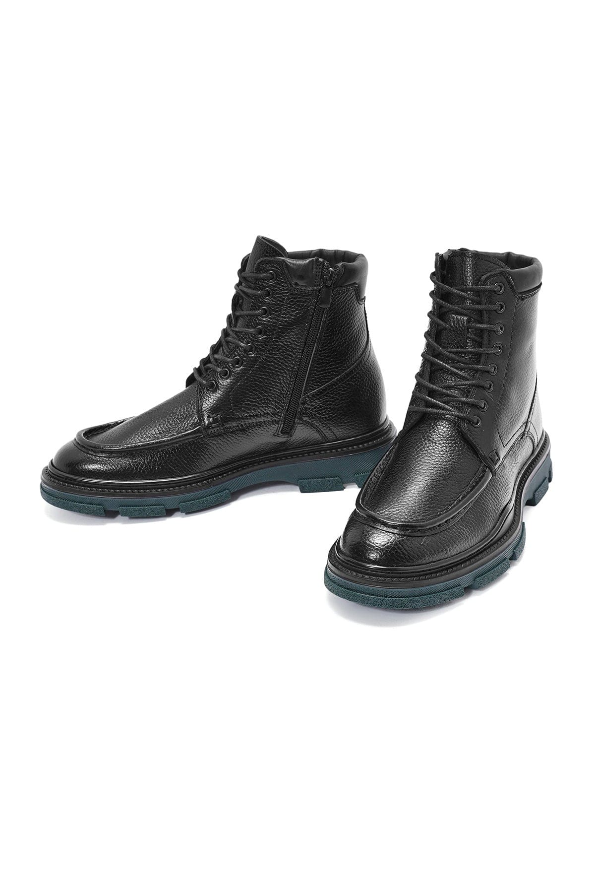 Erkek Siyah Bağcıklı Fermuar Detaylı Deri Casual Bot