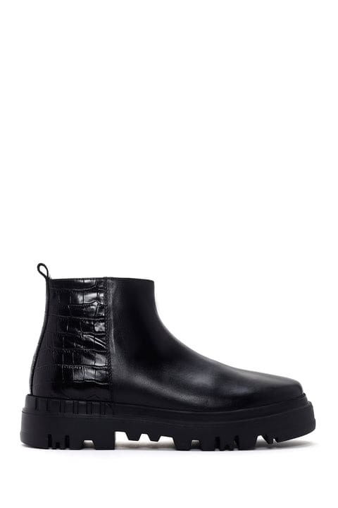 Erkek Siyah Fermuarlı Deri Casual Bot