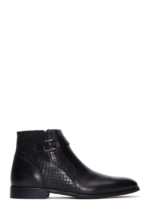 Erkek Siyah Toka Detaylı Deri Klasik Fermuarlı Bot
