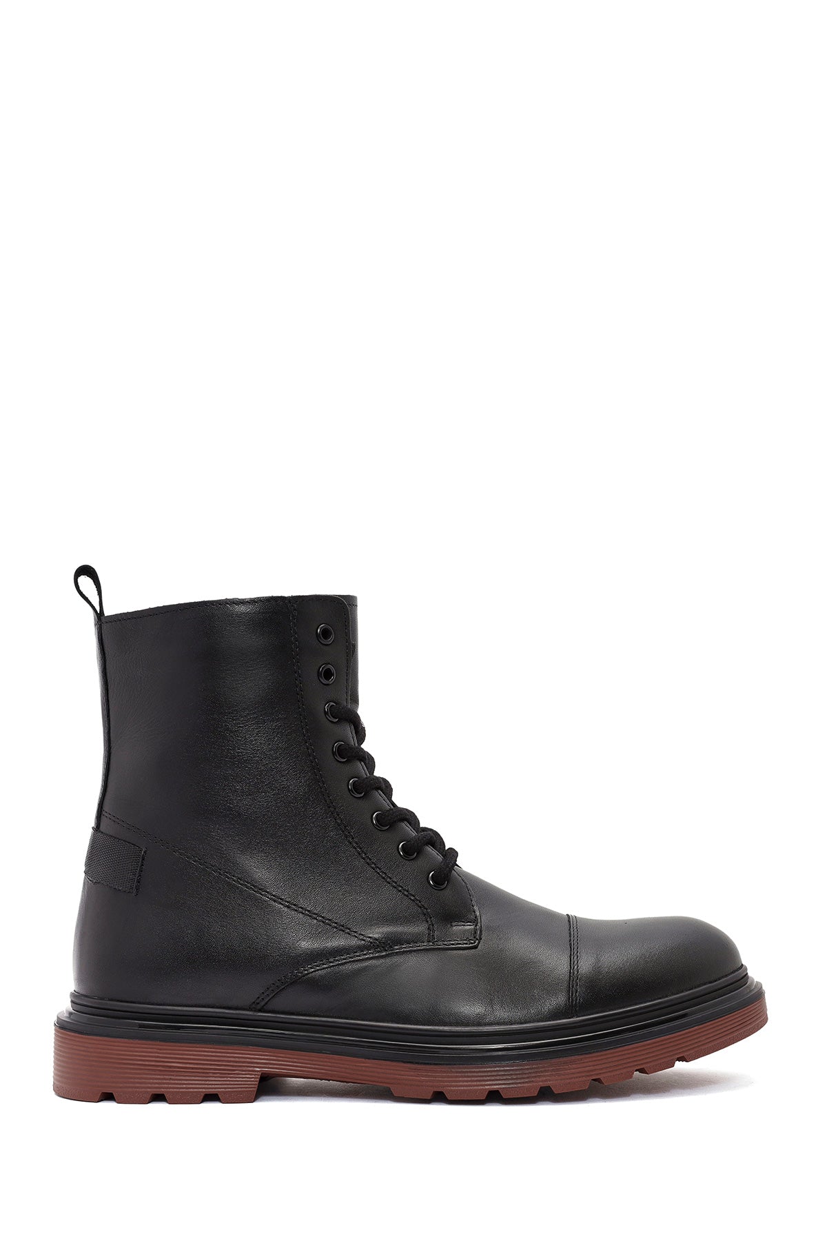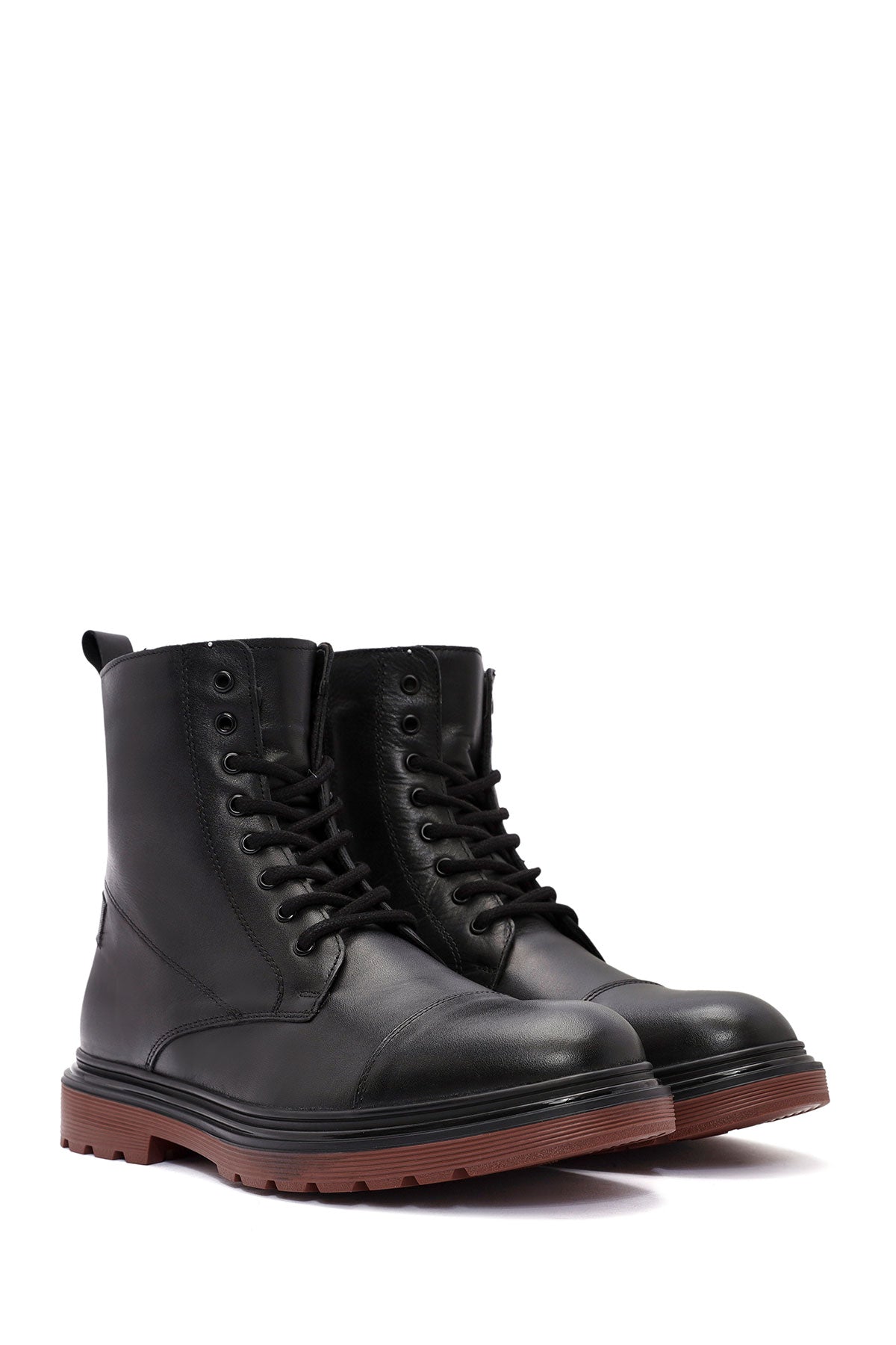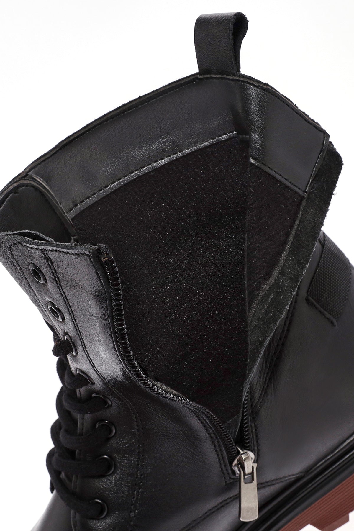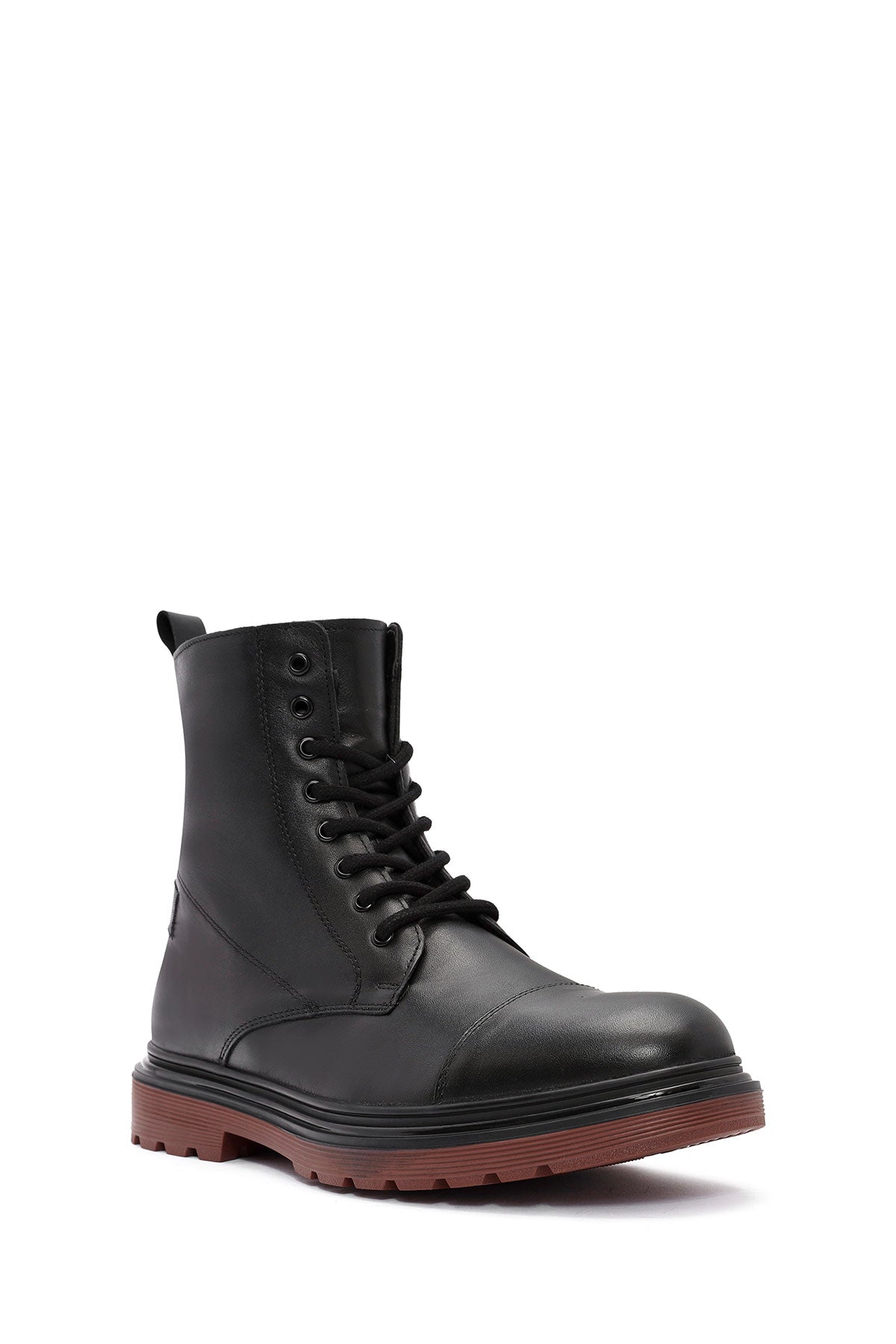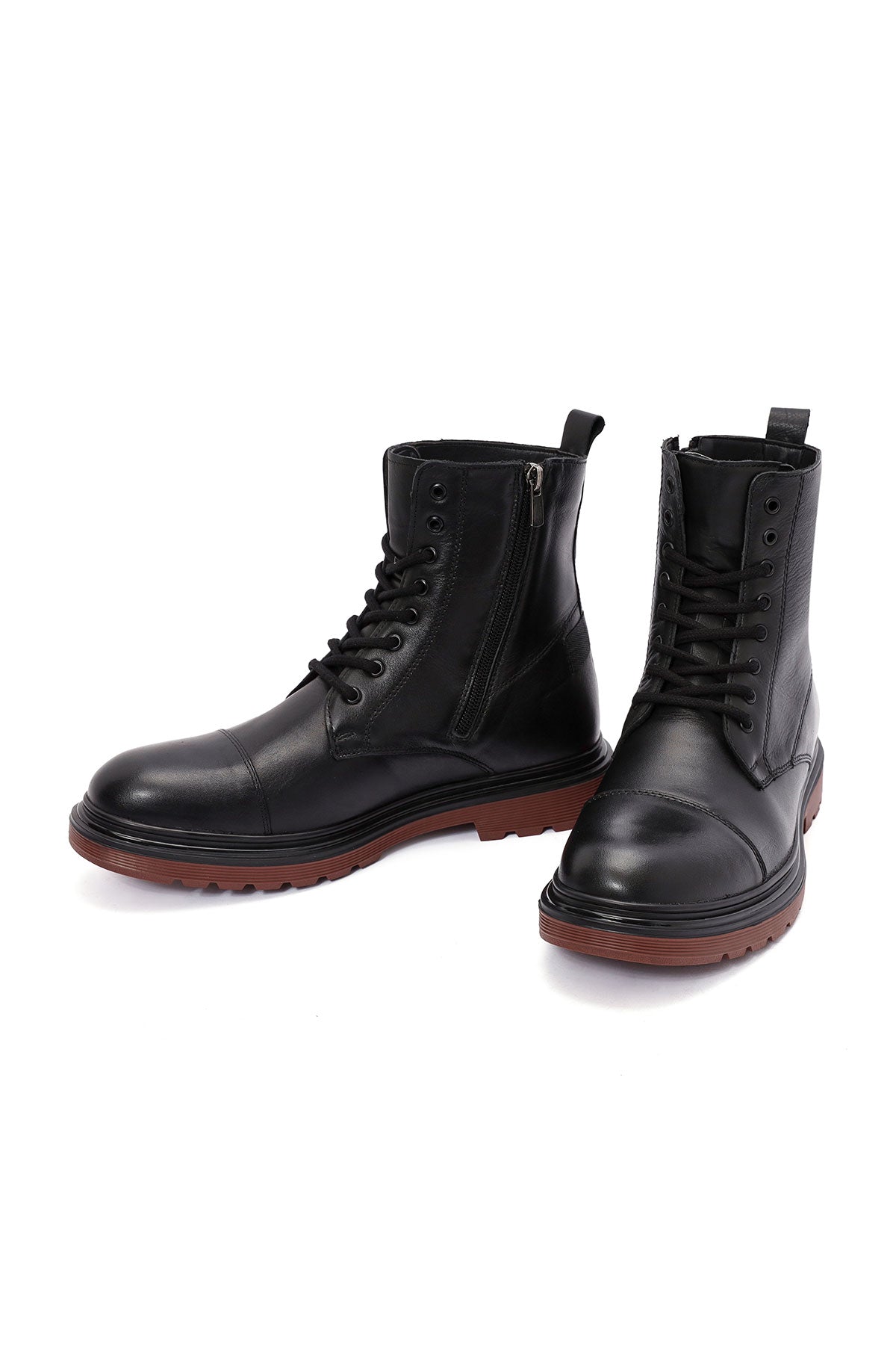 Erkek Siyah Fermuarlı Bağcıklı Deri Postal Bot