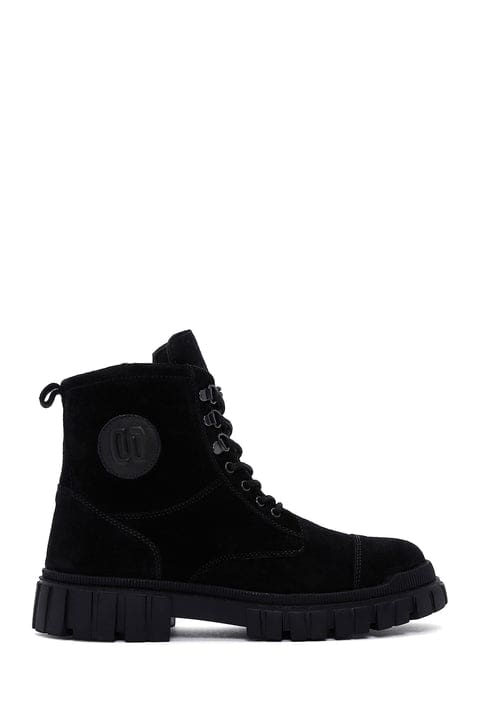 Erkek Siyah Fermuarlı Süet Deri Casual Bot