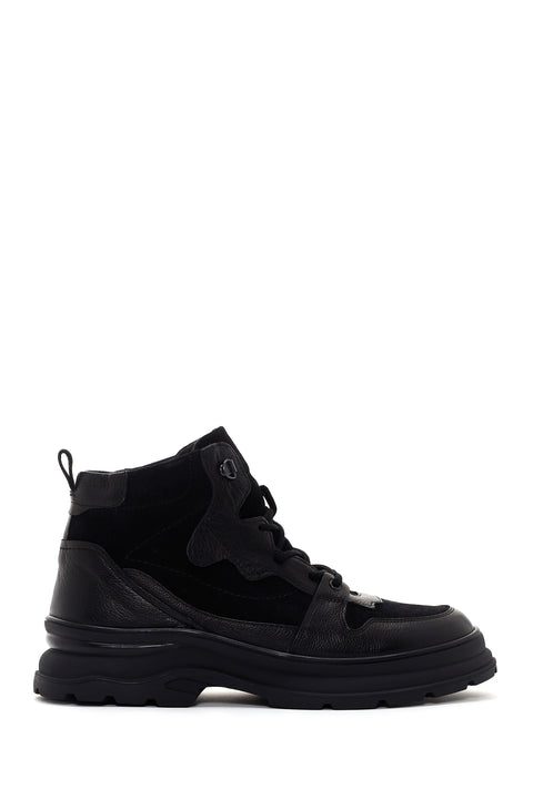 Erkek Siyah Süet Detaylı Casual Deri Bot