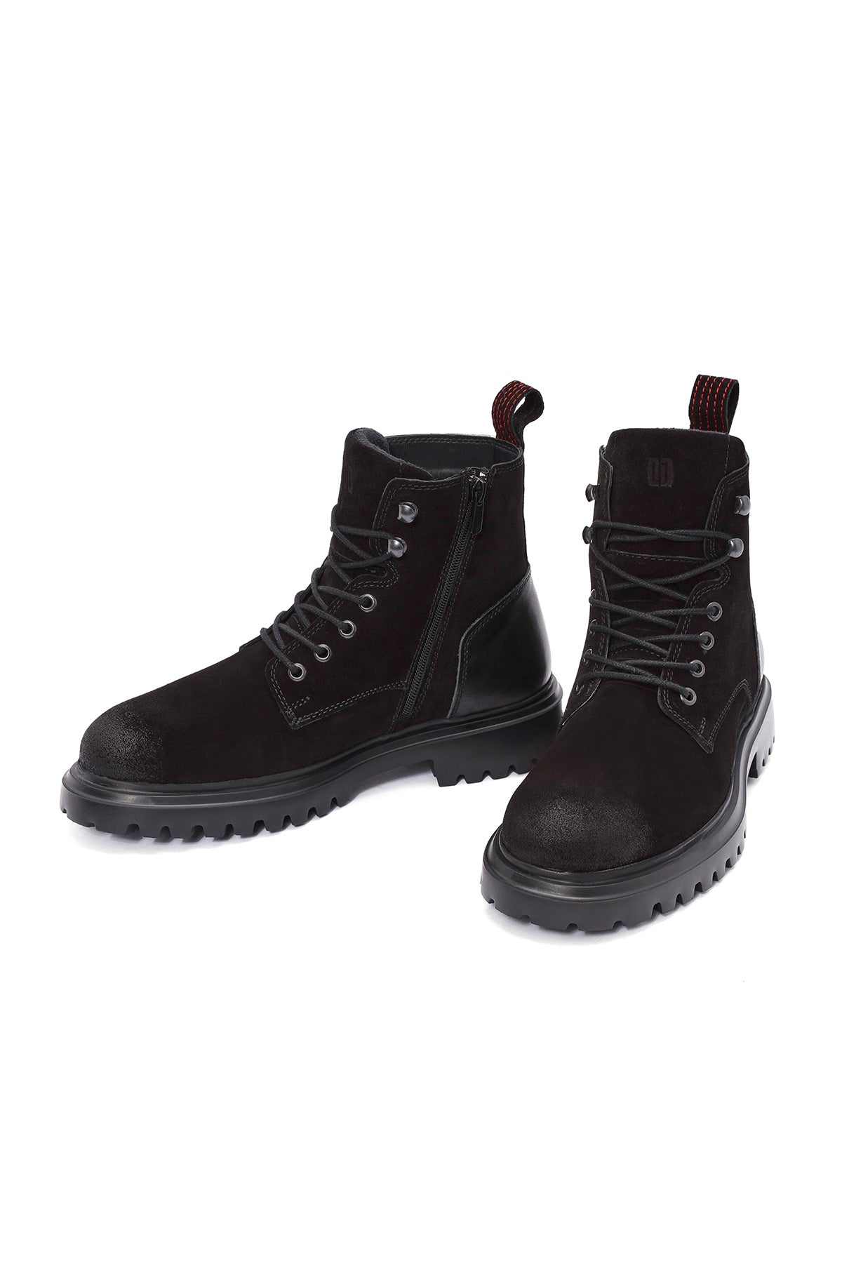 Erkek Siyah Fermuarlı Bağcıklı Süet Deri Casual Bot