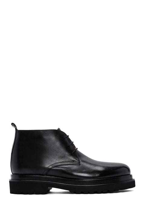 Erkek Siyah Kalın Tabanlı Deri Bot