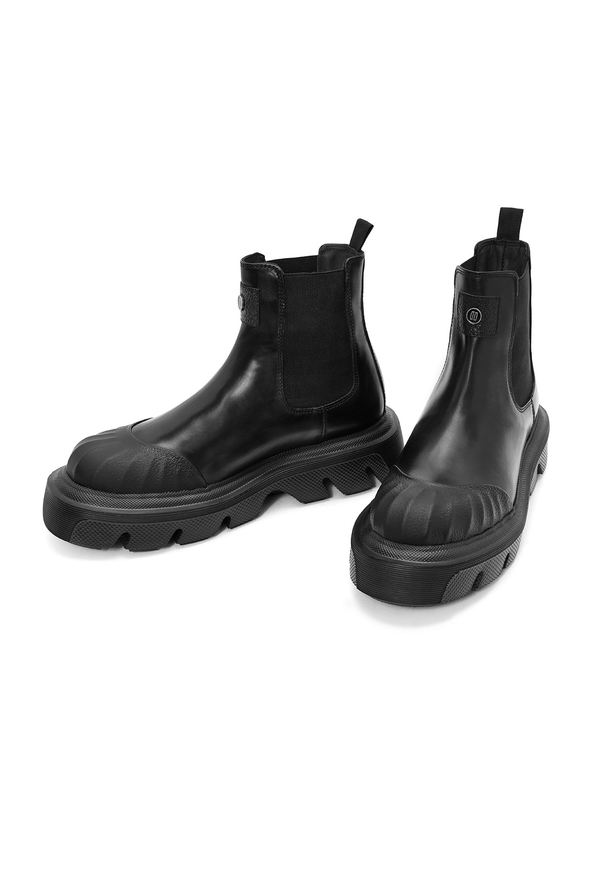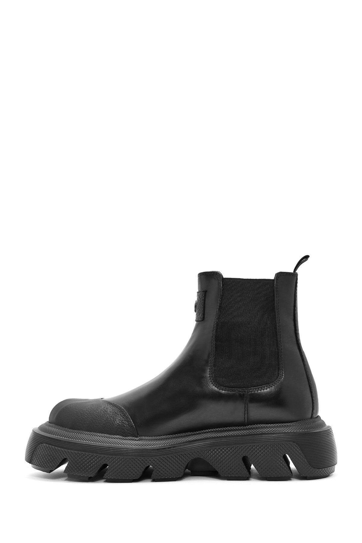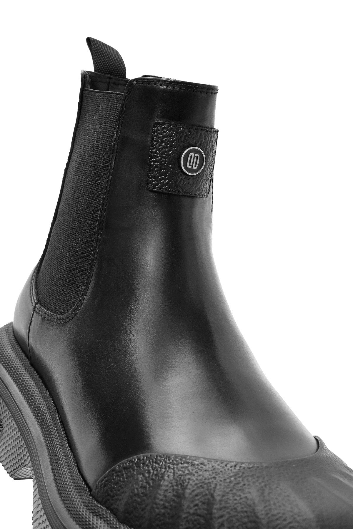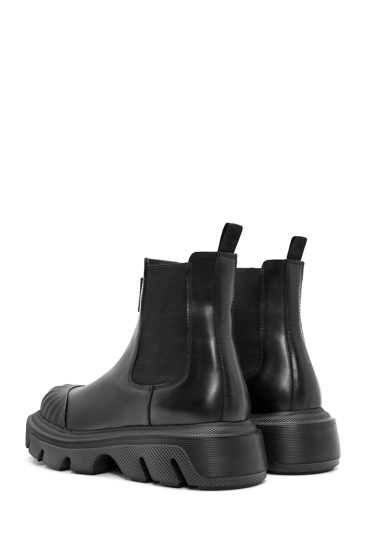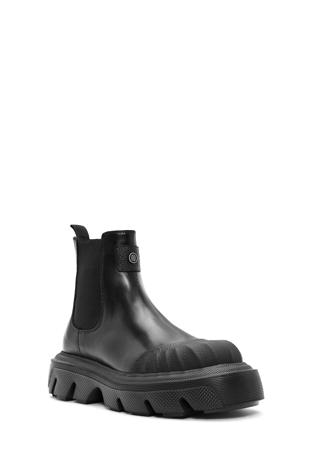 Erkek Siyah Kalın Tabanlı Deri Chelsea Bot