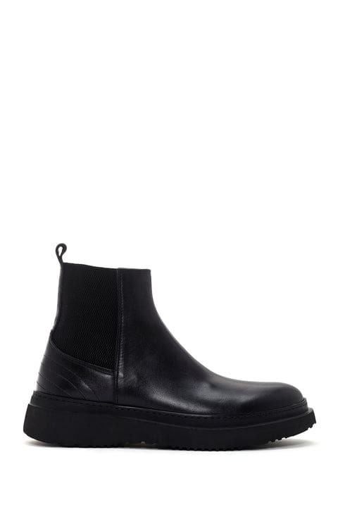Erkek Siyah Kalın Tabanlı Deri Chelsea Bot
