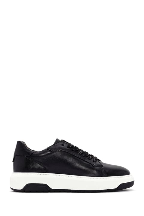 Erkek Siyah Kalın Tabanlı Bağcıklı Deri Sneaker