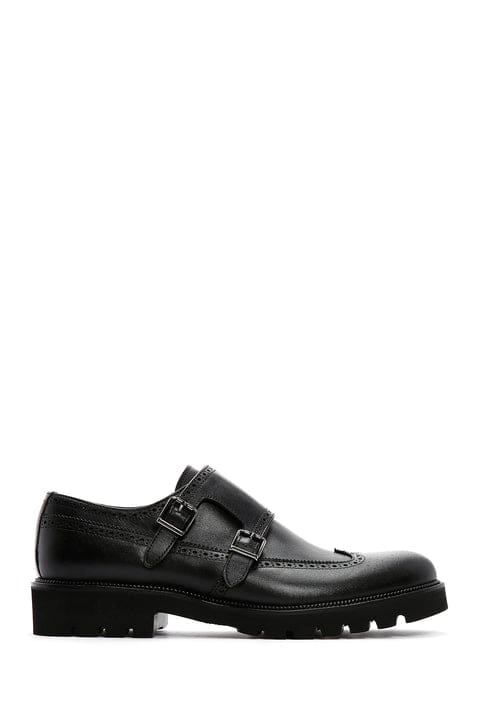Erkek Siyah Çift Tokalı Deri Casual Ayakkabı