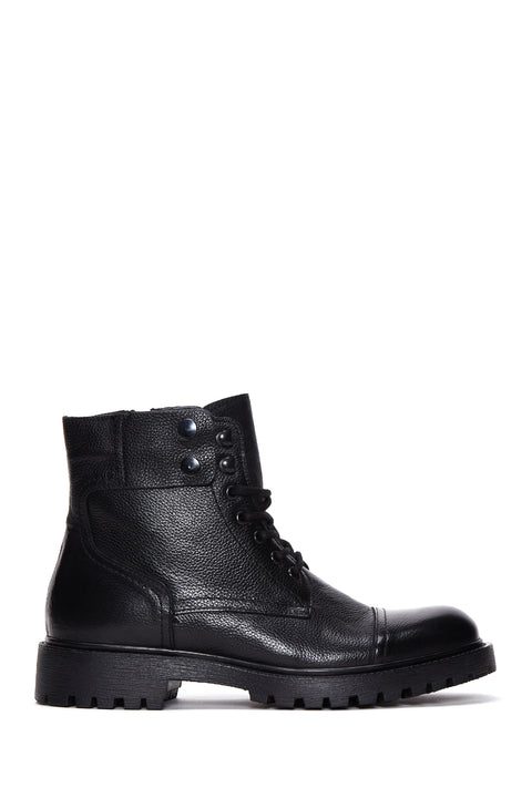 Erkek Siyah Deri Fermuarlı Casual Postal Bot