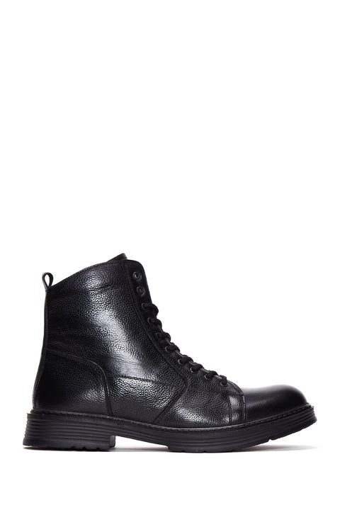Erkek Siyah Deri Fermuarlı Casual Postal Bot