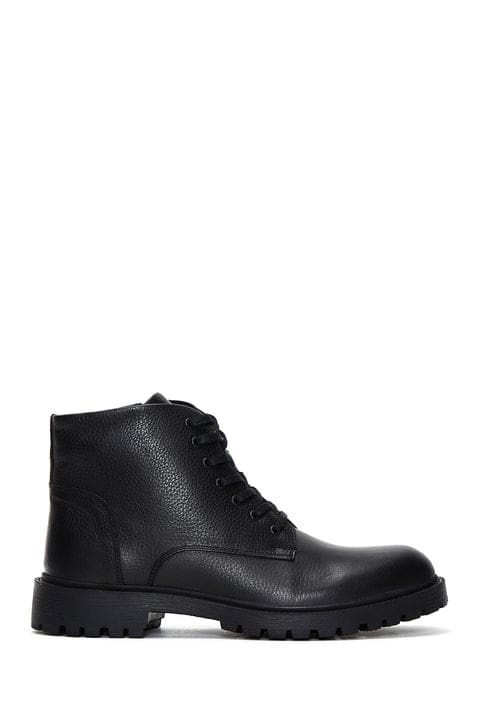 Erkek Siyah Deri Fermuarlı Casual Bot