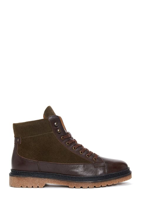 Erkek Kahverengi Deri Süet Detaylı Bot