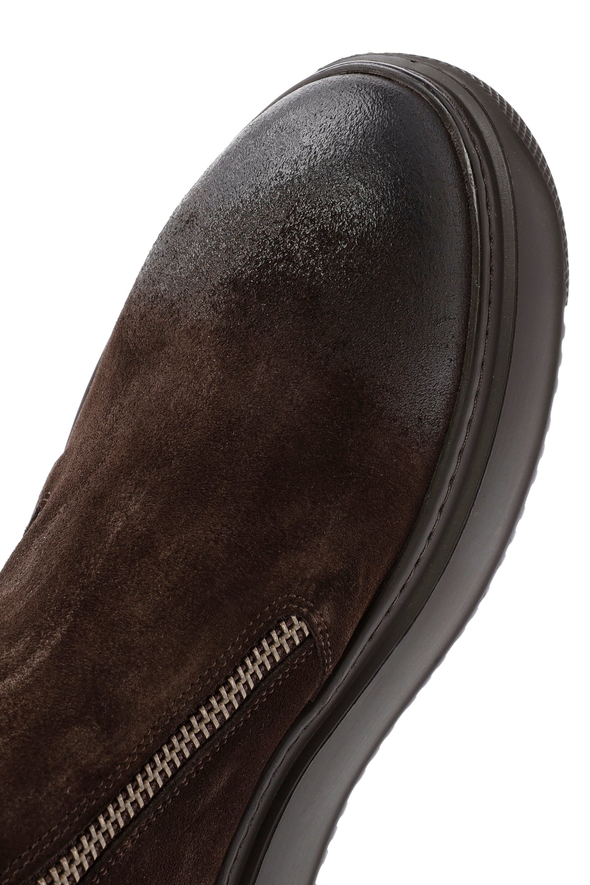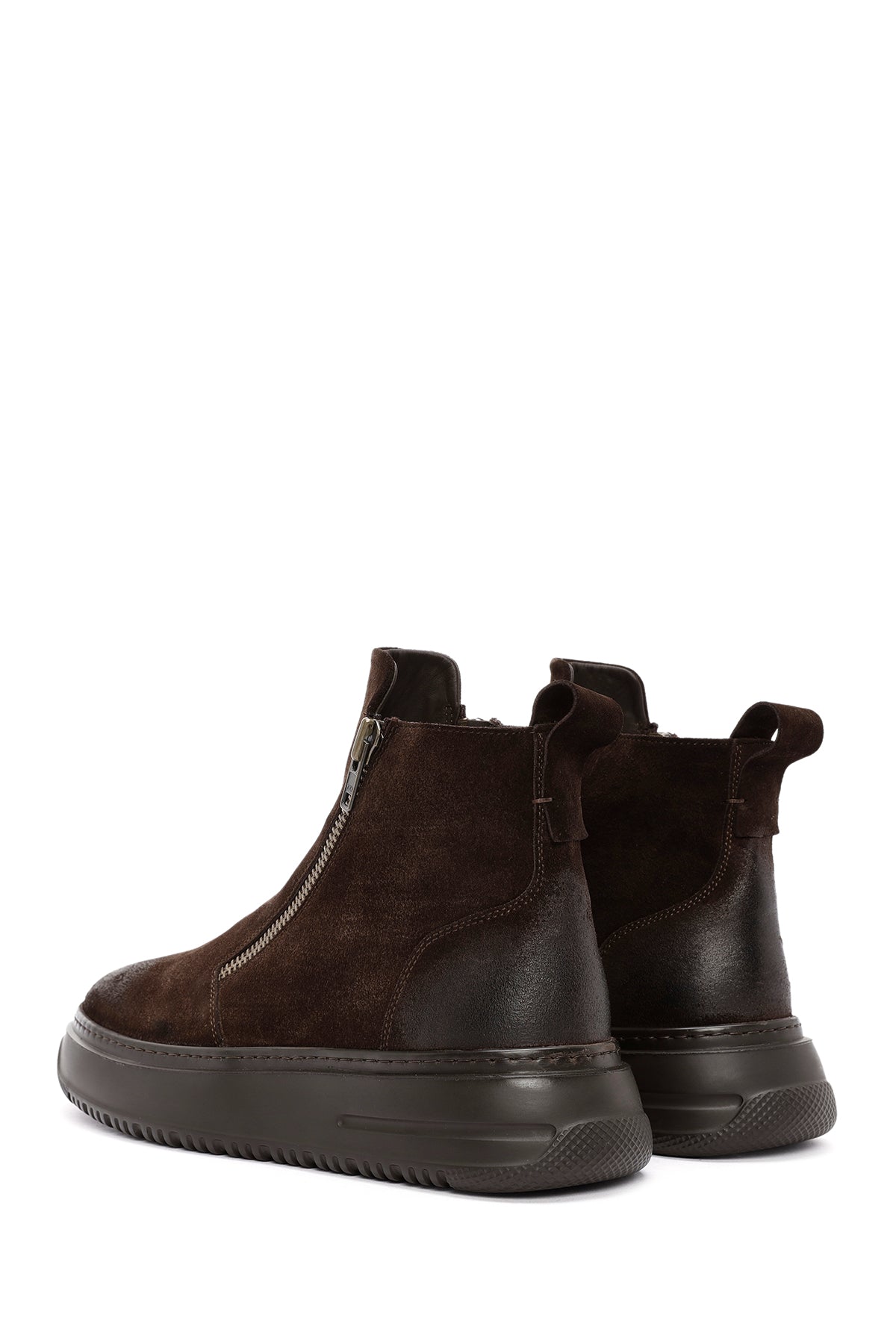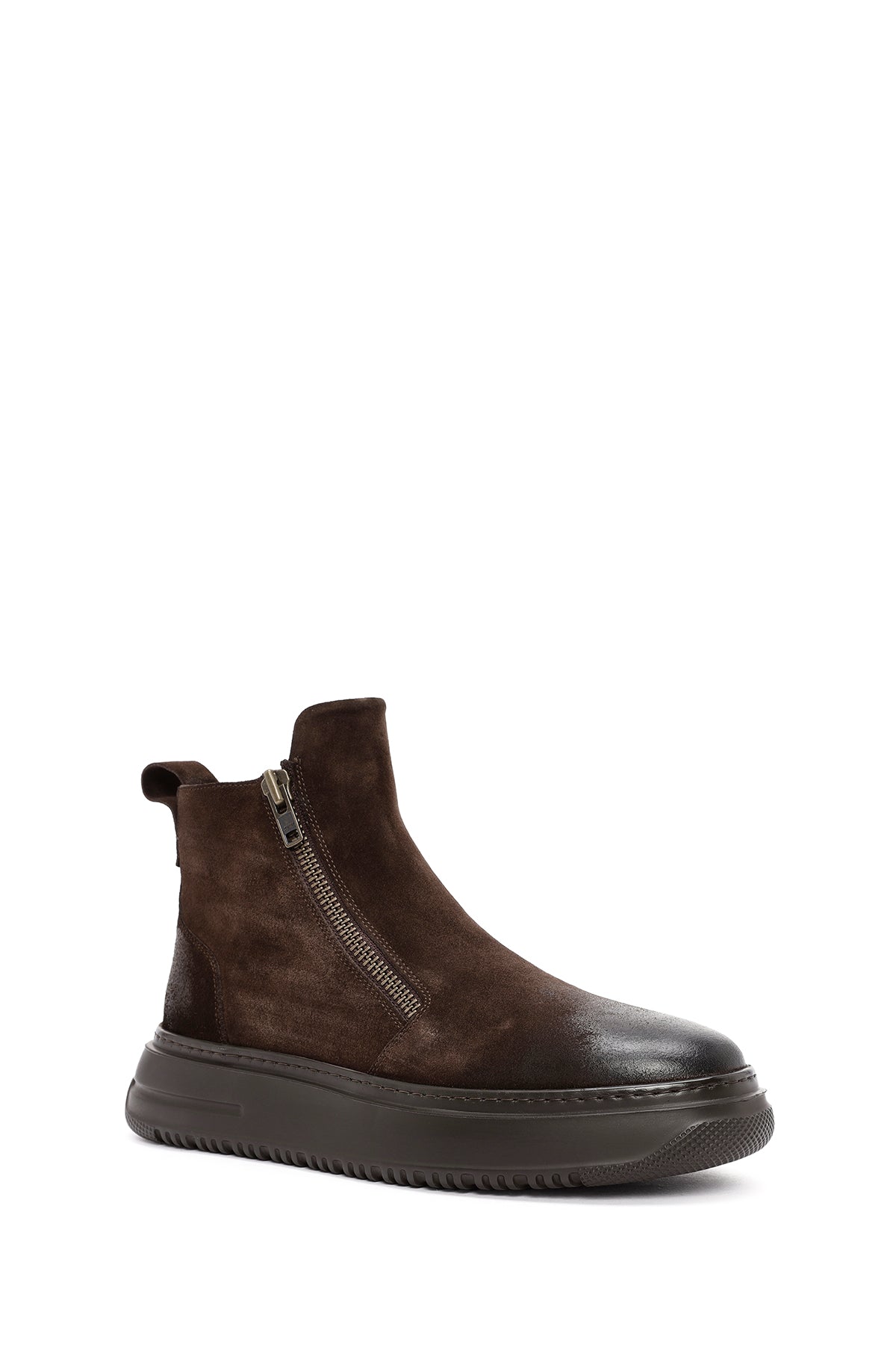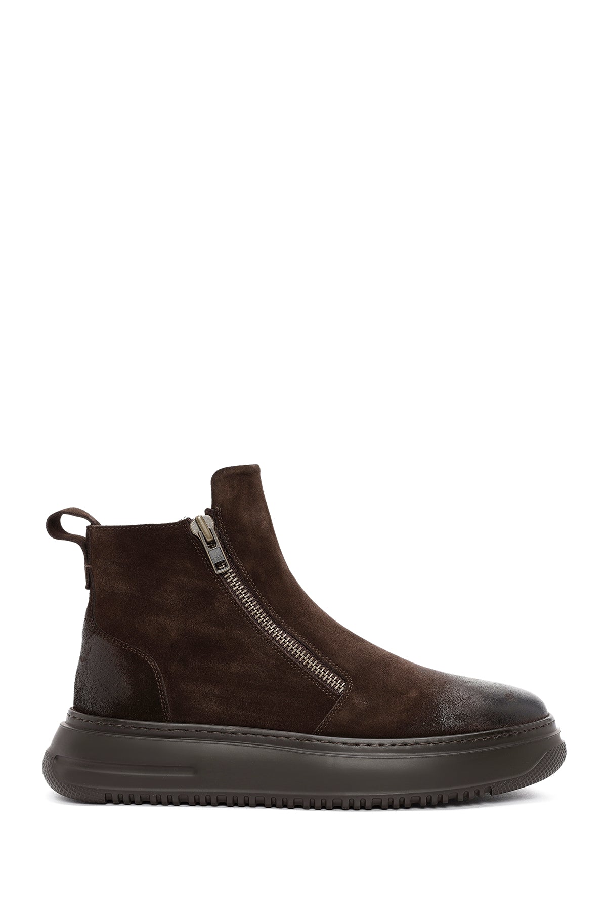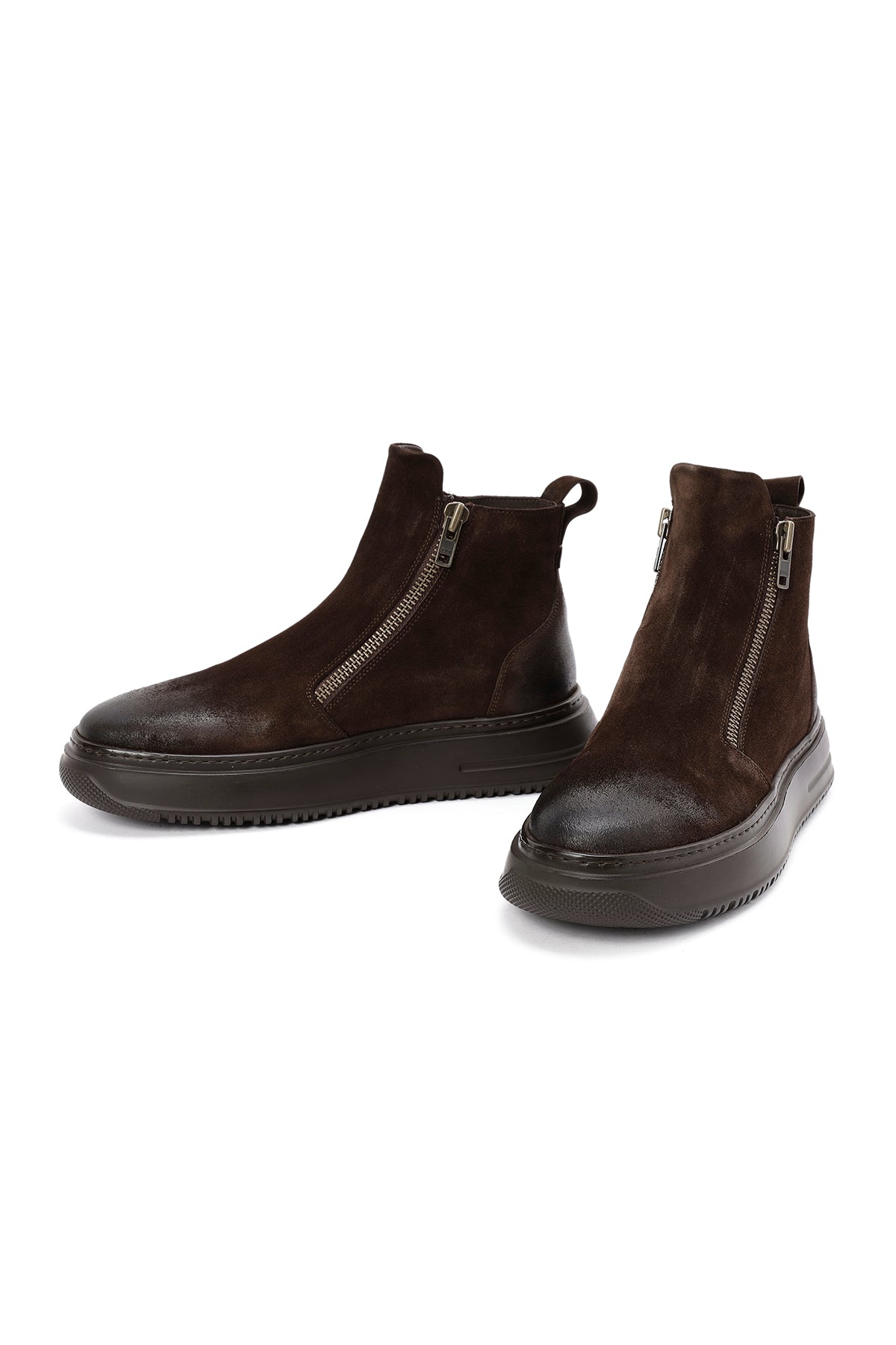 Erkek Kahverengi Çift Fermuarlı Süet Deri Casual Bot