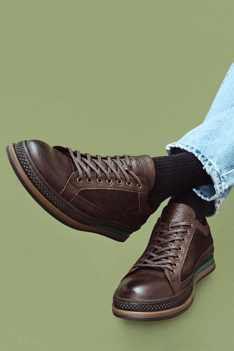 کتونی اسپرت مردانه چرم قهوه ای دری مد