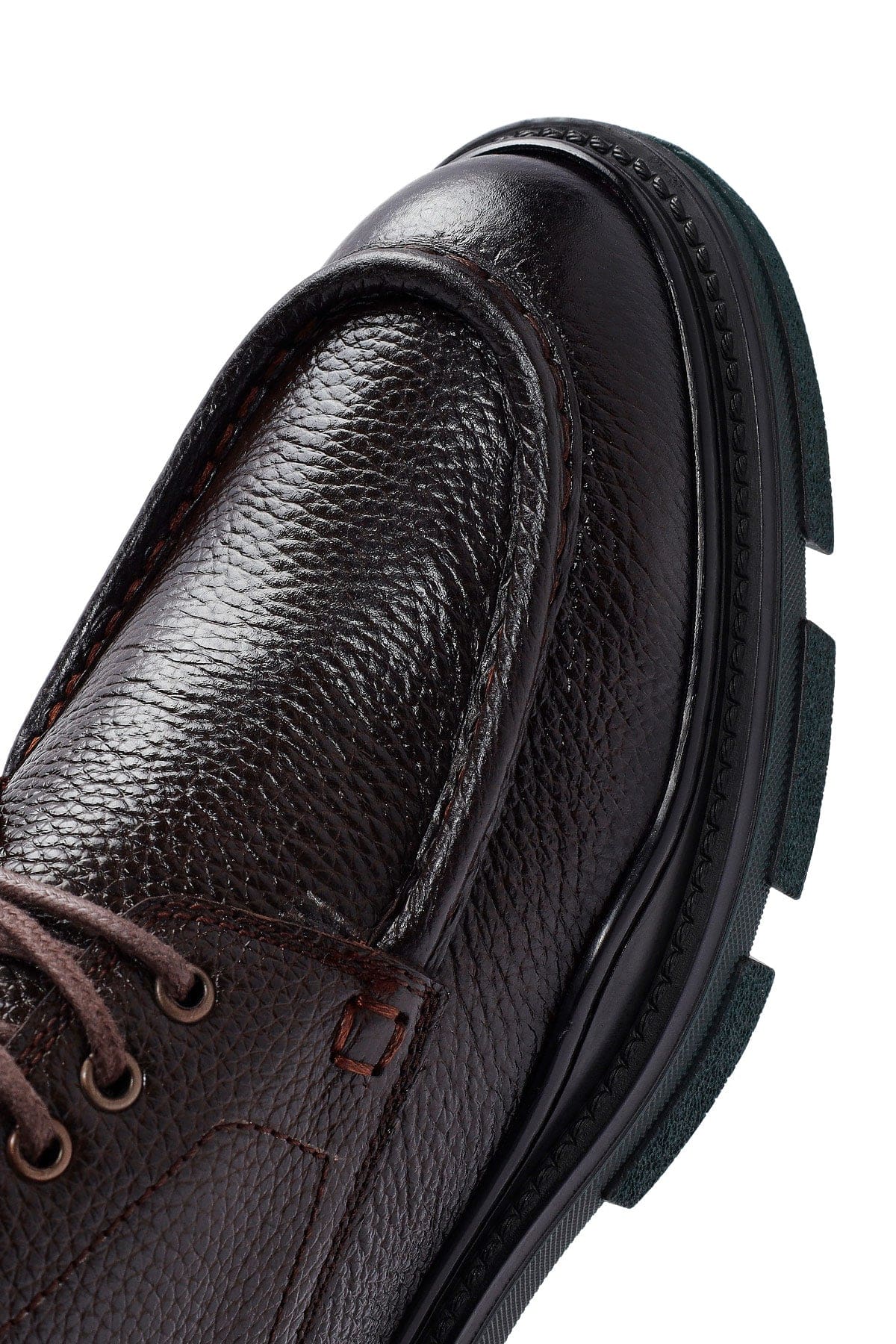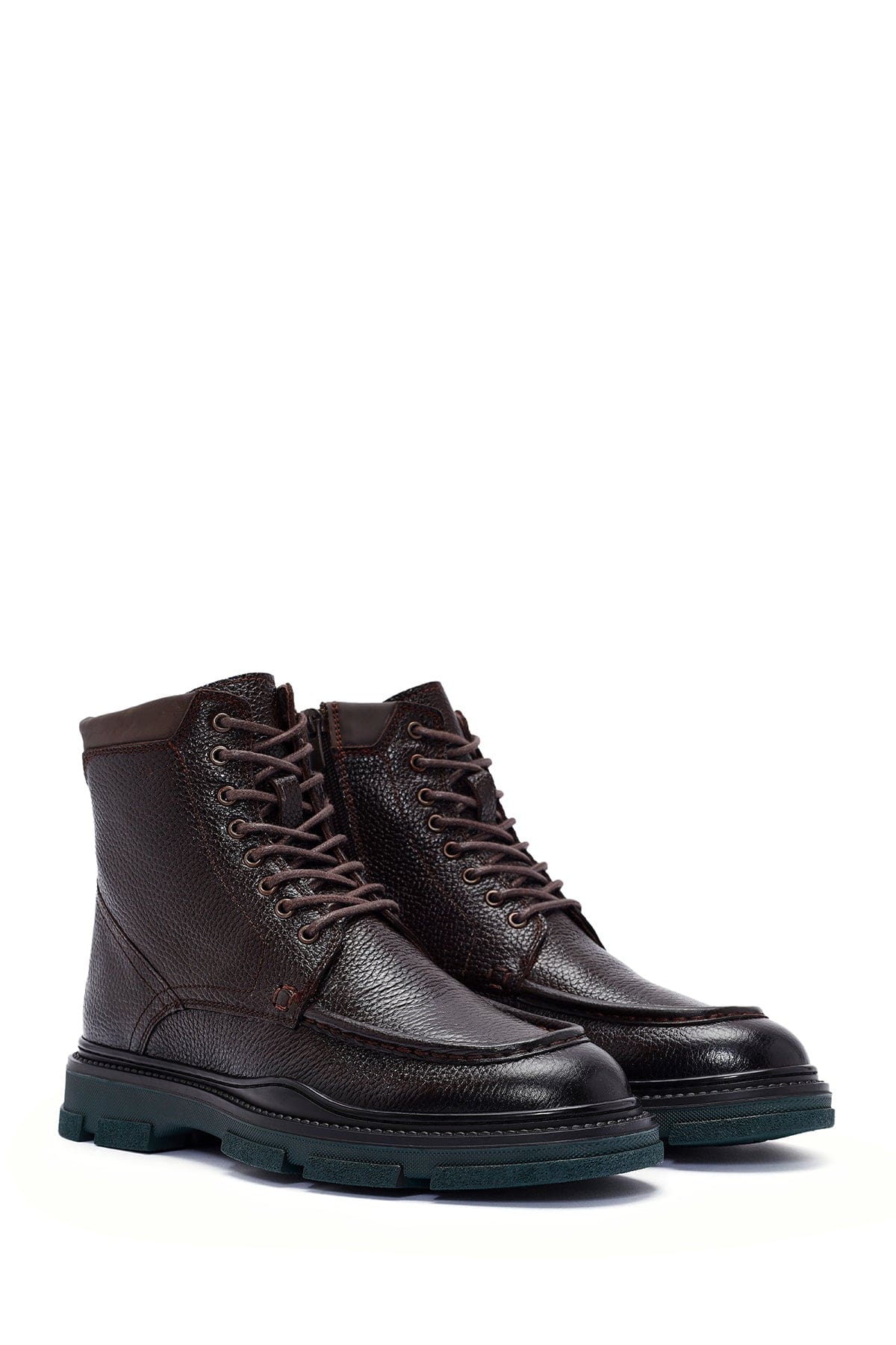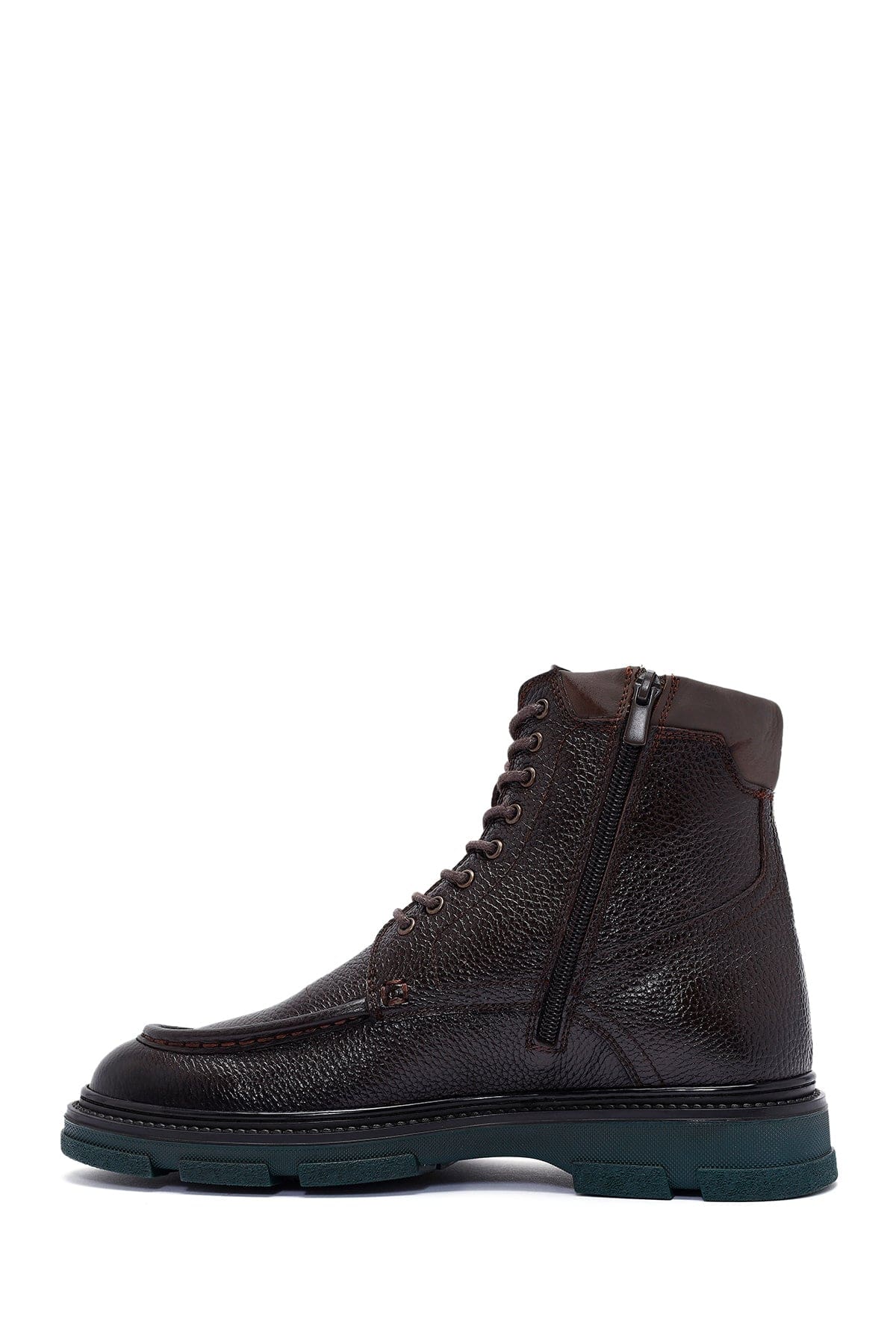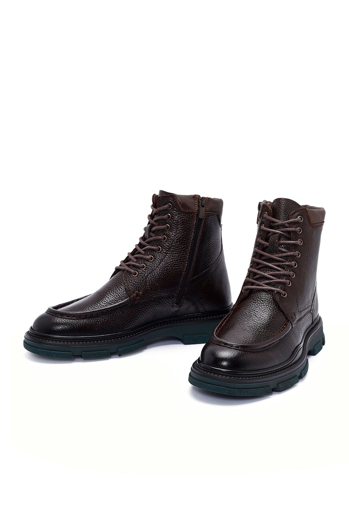 Erkek Kahverengi Bağcıklı Fermuar Detaylı Deri Casual Bot