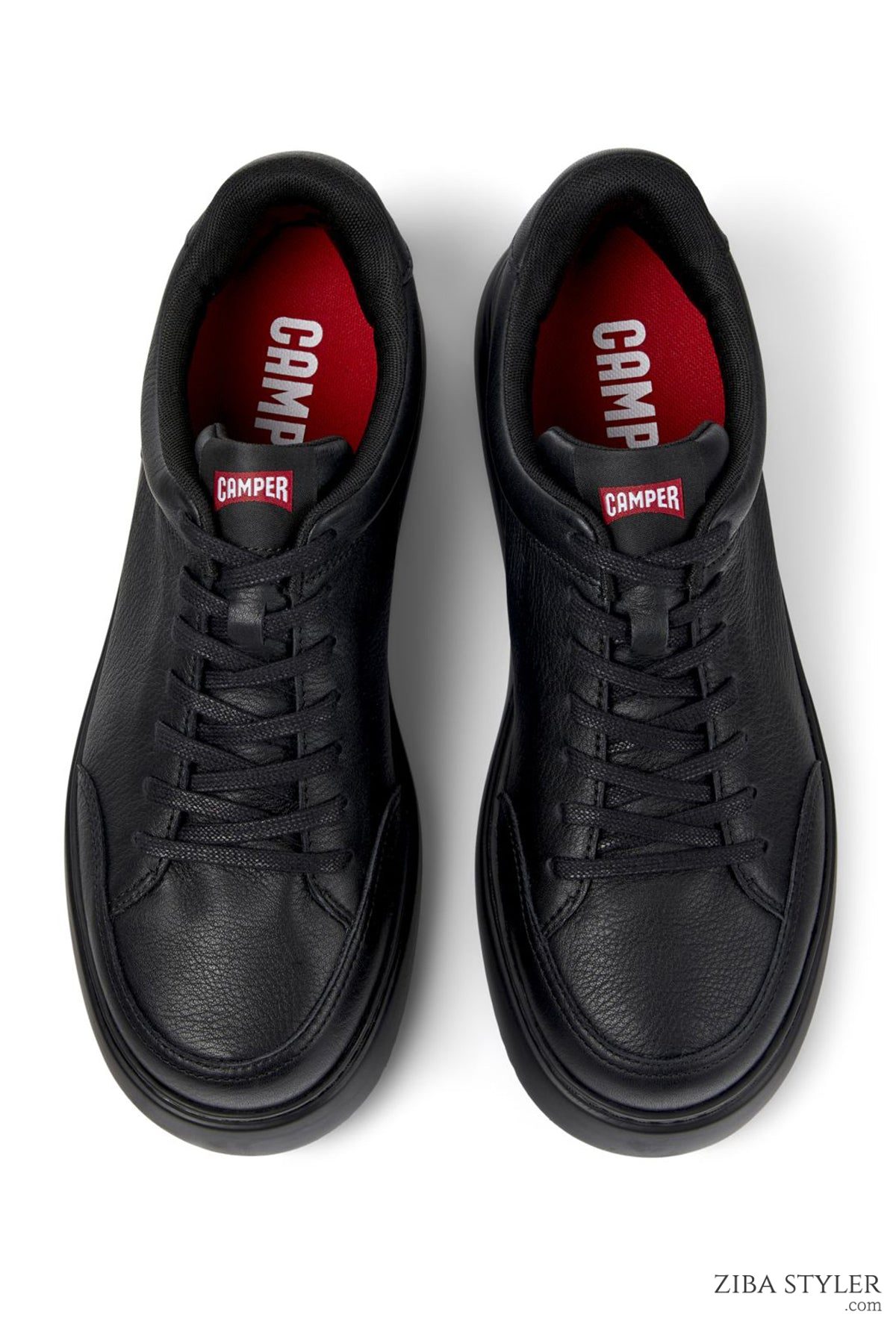 کتونی اسپرت چرمی مشکی مردانه رانر کمپر