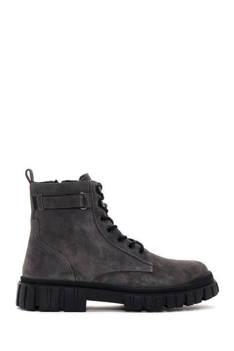 Erkek Gri Fermuarlı Casual Süet Deri Bot