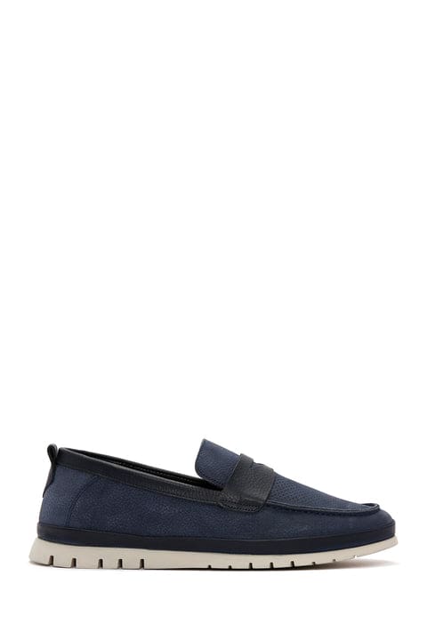 Erkek Lacivert Nubuk Deri Casual Loafer