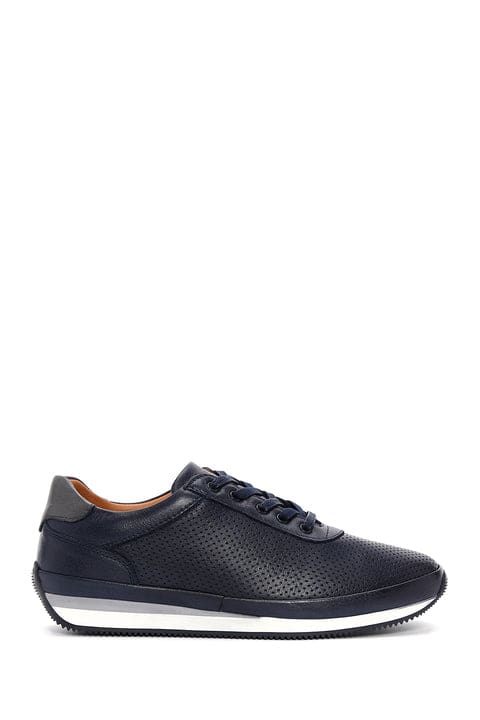 Erkek Lacivert Bağcıklı Deri Casual Sneaker
