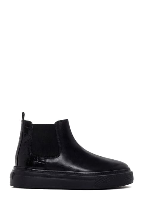 بوت چرمی چلسی مردانه با زیره ضخیم مشکی دری مد
