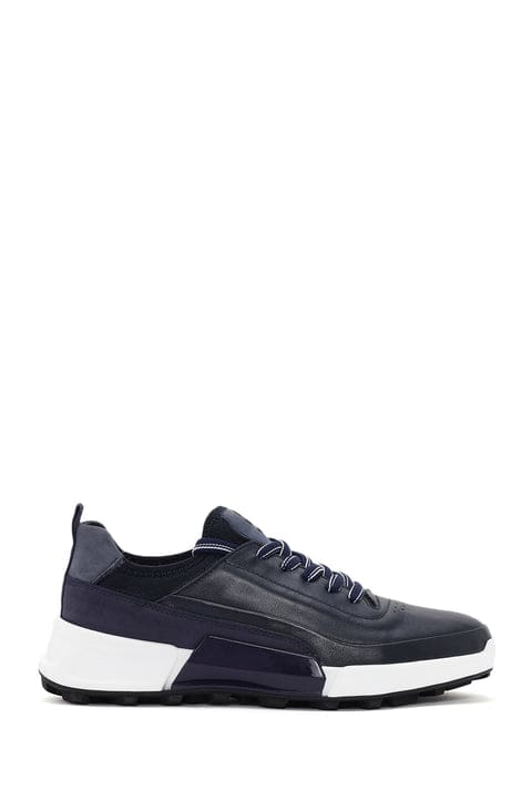Erkek Lacivert Bağcıklı Kalın Tabanlı Deri Sneaker