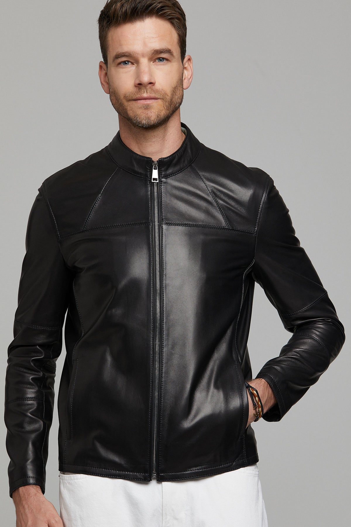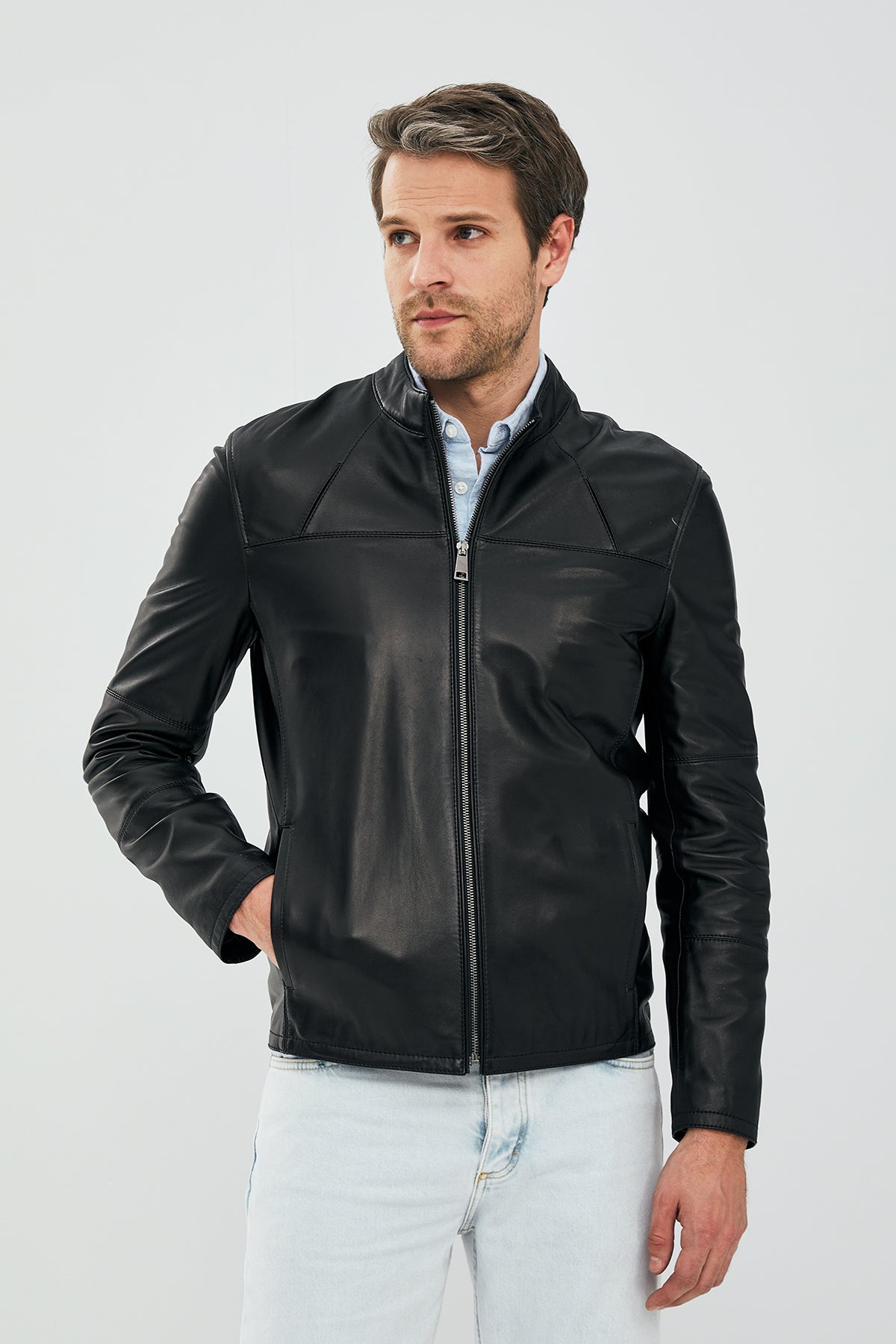 کت چرمی کوتاه اسلیم فیت مردانه نیمار دری مد