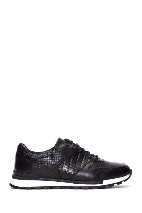 Erkek Siyah Bağcıklı Deri Casual Sneaker