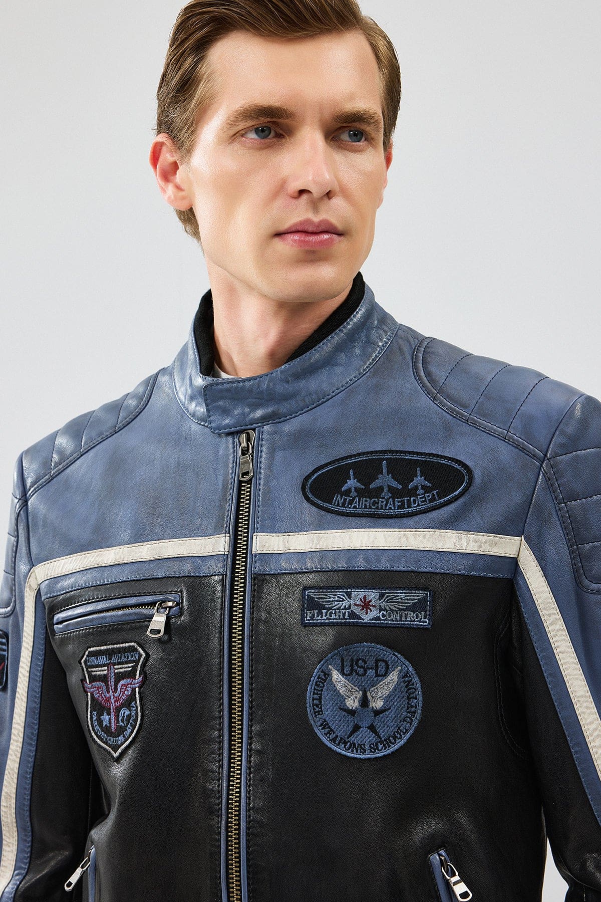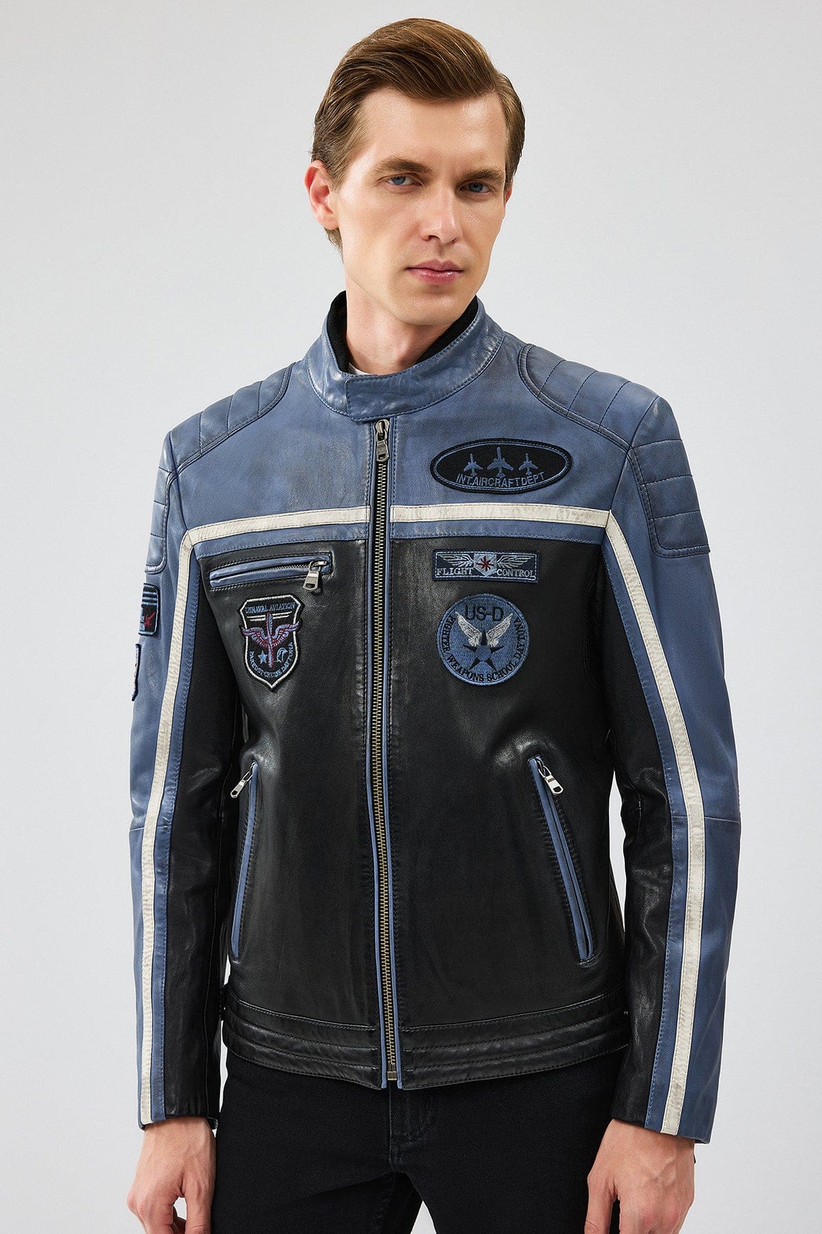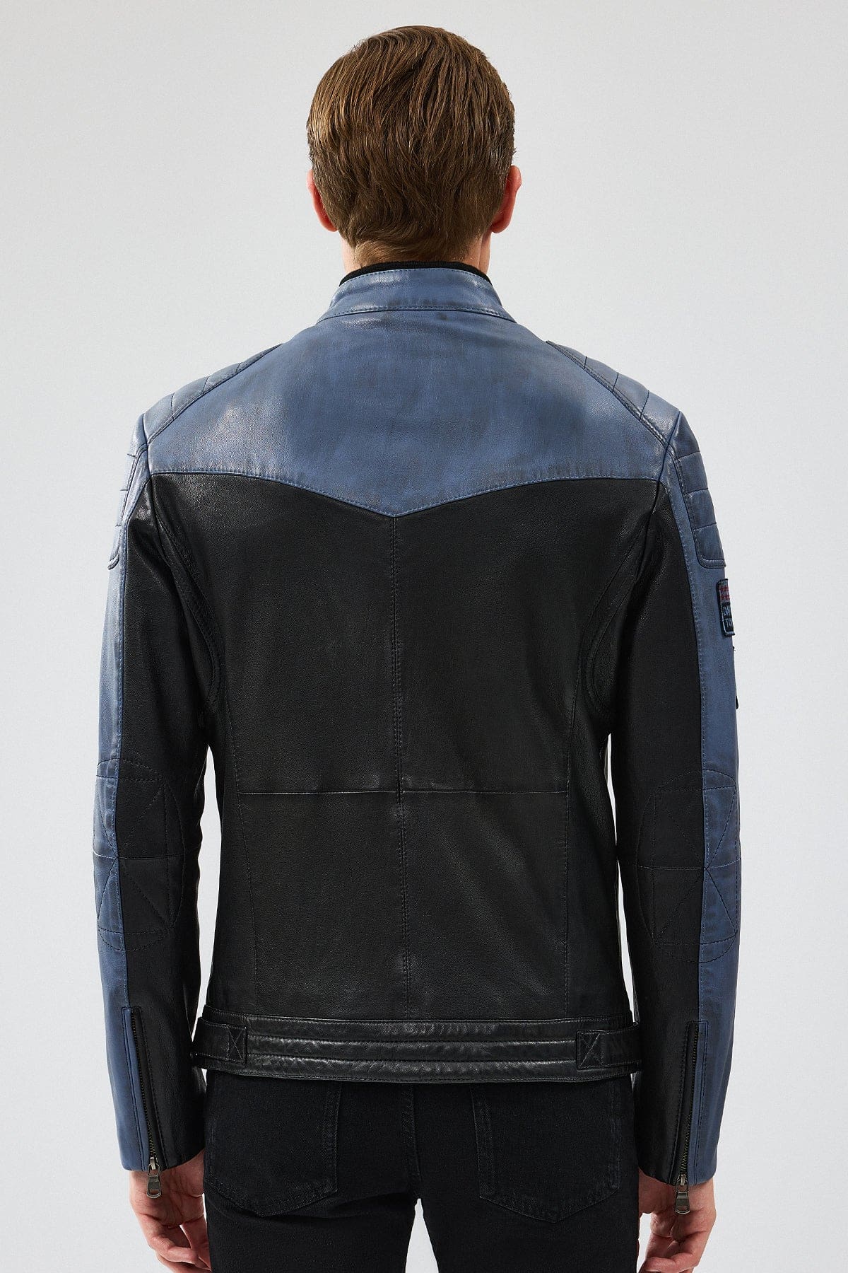 Takeoff Erkek Mavi Slim-Fit Deri Ceket