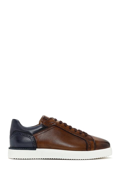کتونی چرمی بند دار مردانه قهوه ای مایل به زرد دری مد