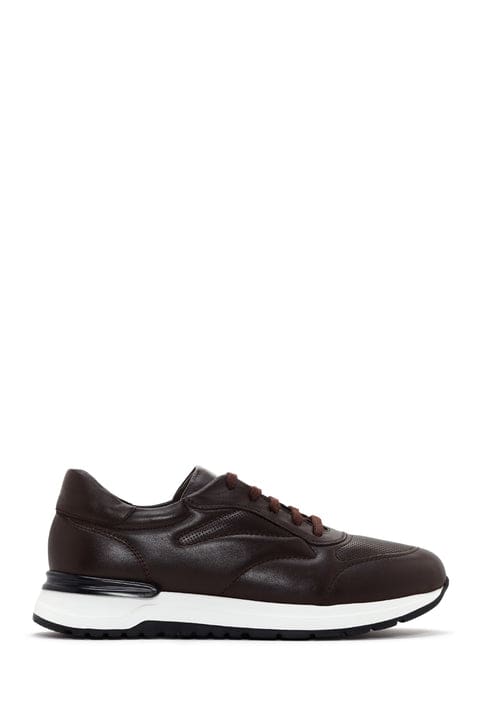 Erkek Kahverengi Kalın Tabanlı Deri Sneaker