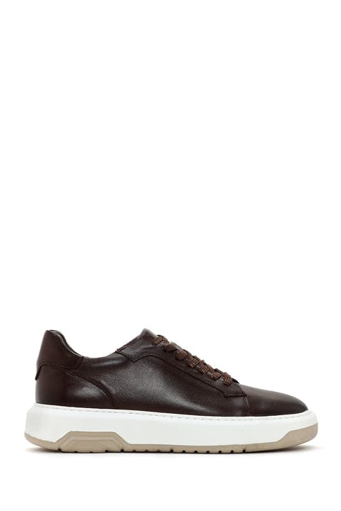 Erkek Kahverengi Kalın Tabanlı Bağcıklı Deri Sneaker