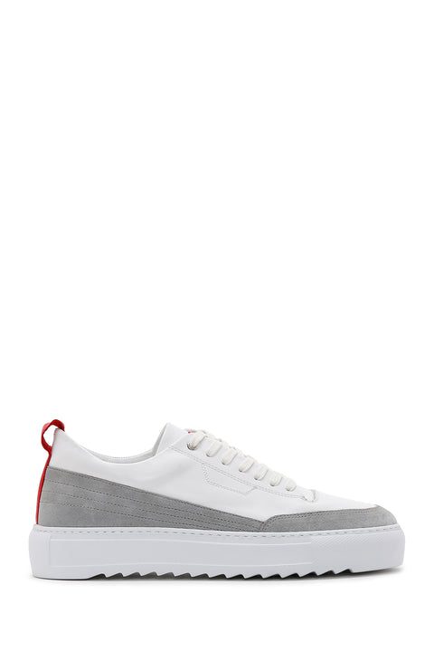 Erkek Beyaz Deri Kalın Tabanlı Sneaker