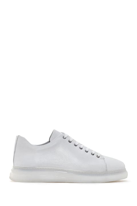 Erkek Beyaz Kalın Tabanlı Bağcıklı Deri Sneaker