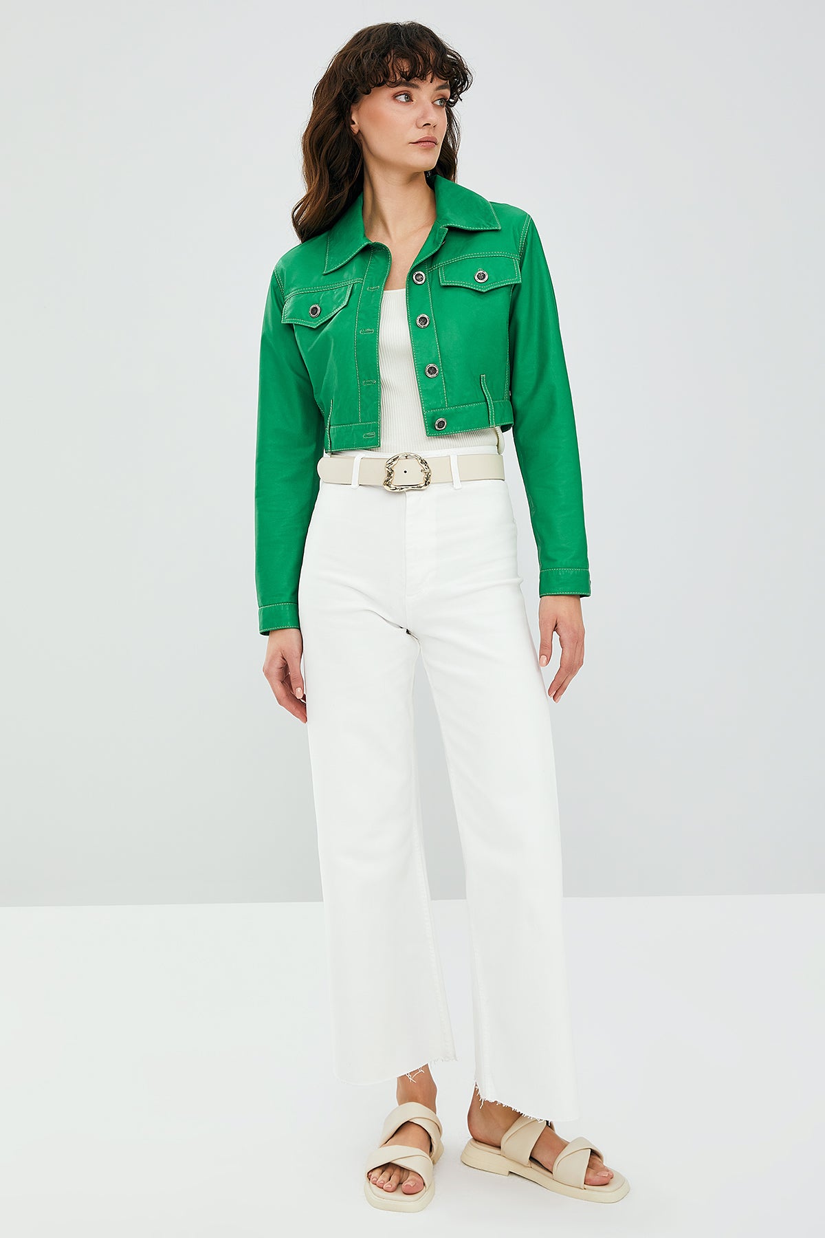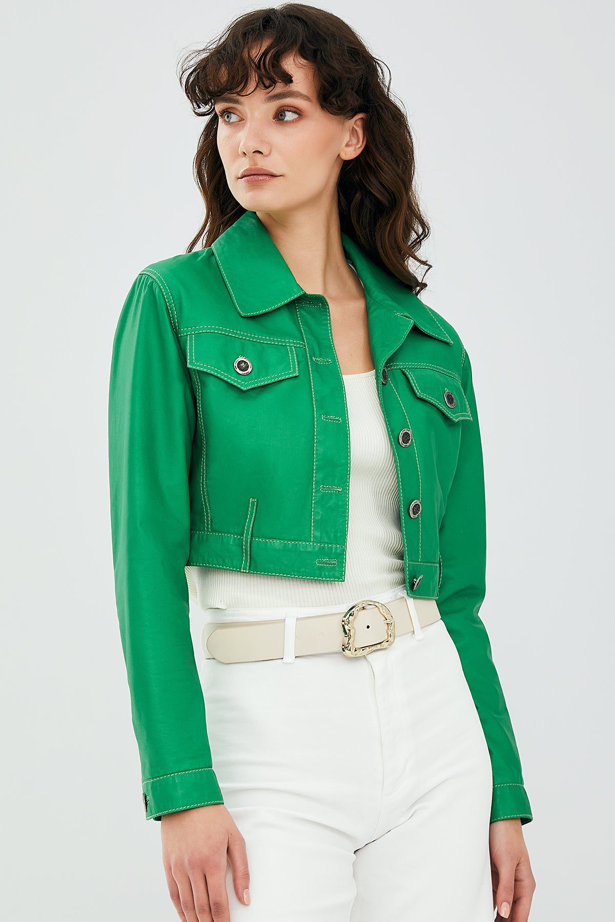 Mona Kadın Yeşil Kısa Deri Ceket
