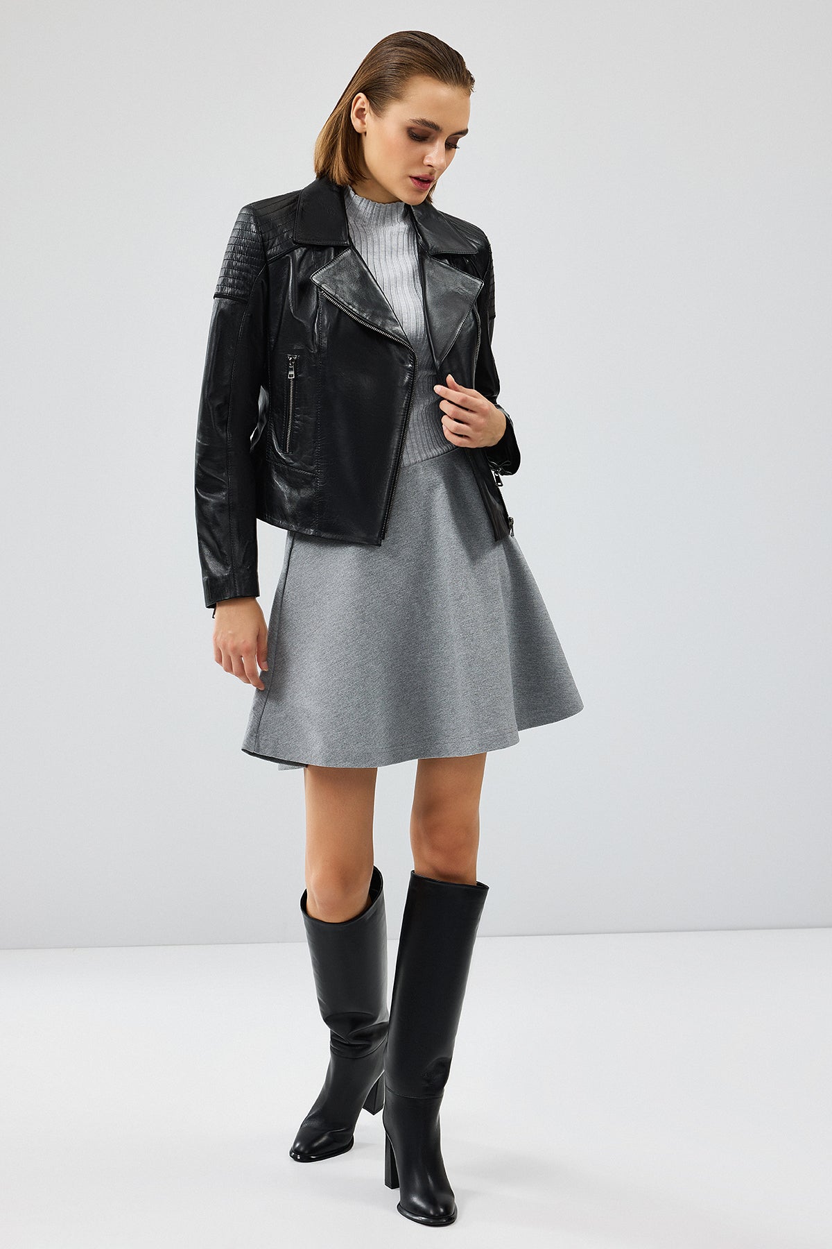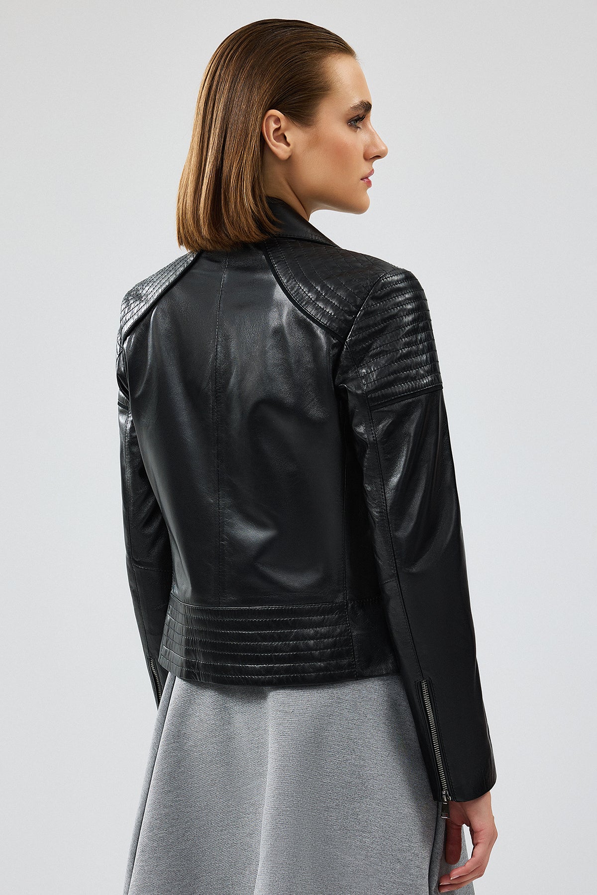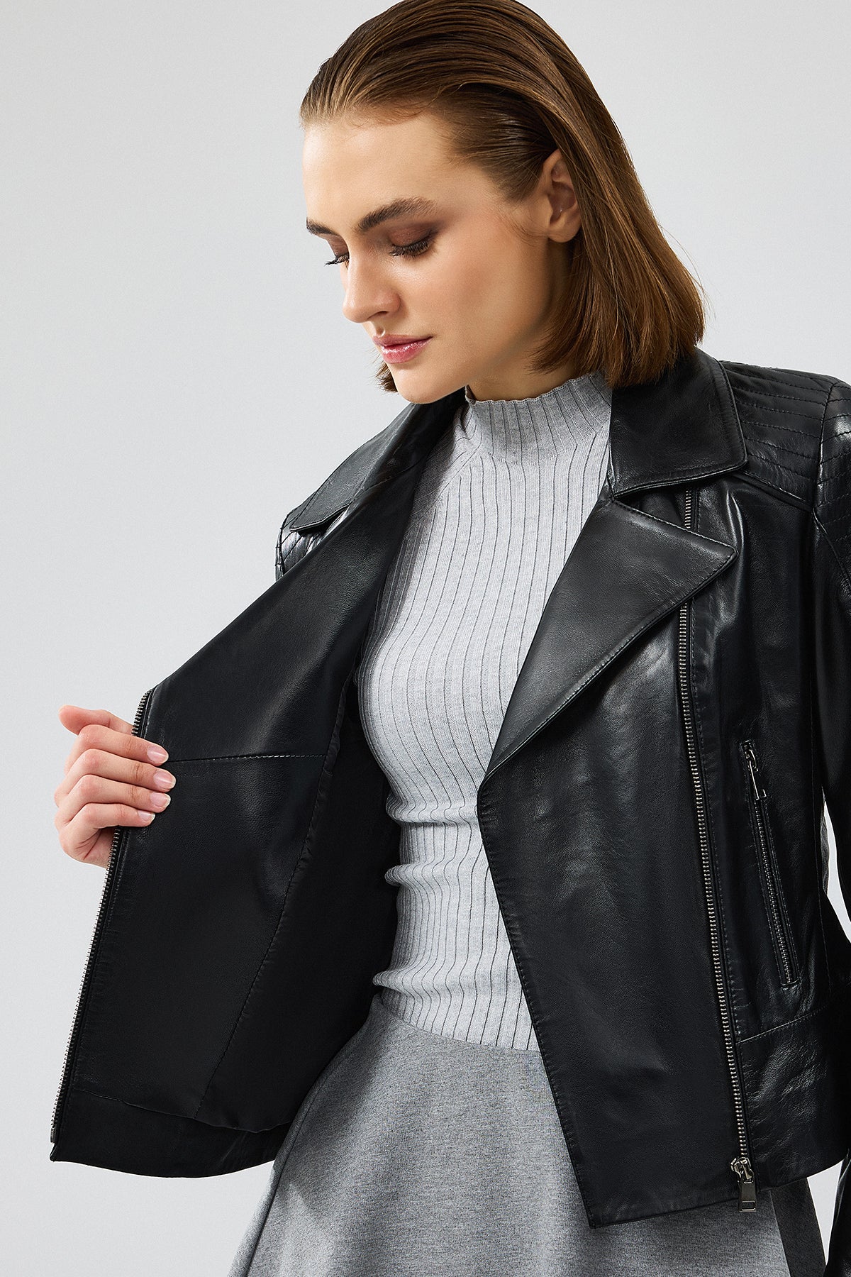 Monaco Kadın Siyah Biker Deri Ceket