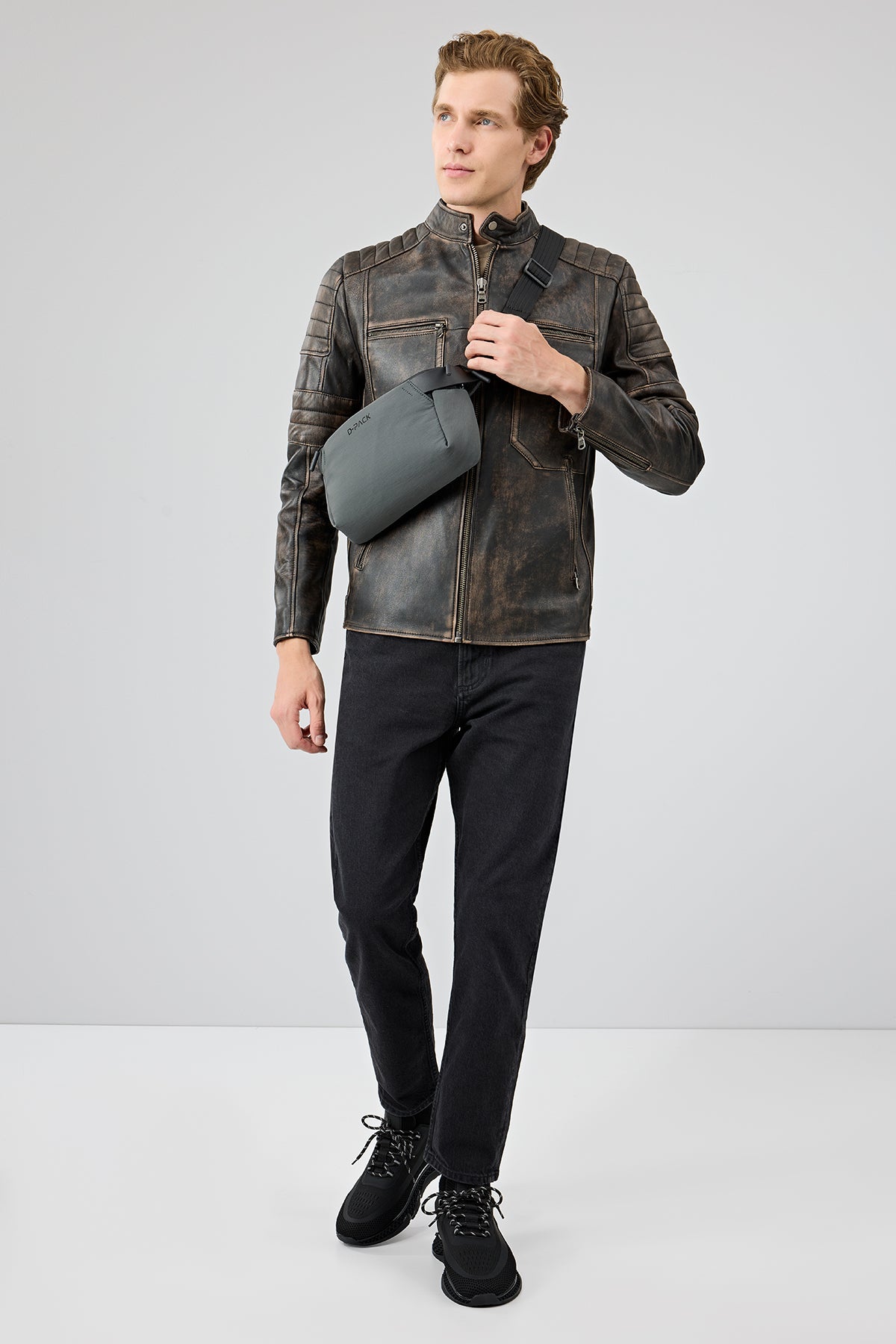 کاپشن چرم اسلیم فیت وینتیج مردانه مورانت دری مد