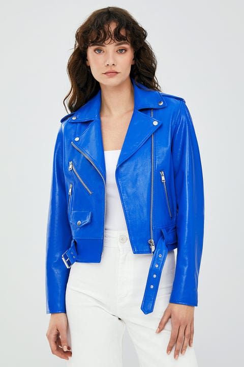 کاپشن چرم موتورسواری آبی زنانه نیواج دری مد