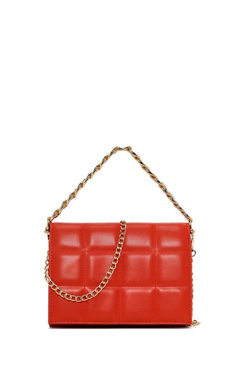 Kadın Turuncu Uzun Zincir Askılı Kapitone Çapraz Çanta