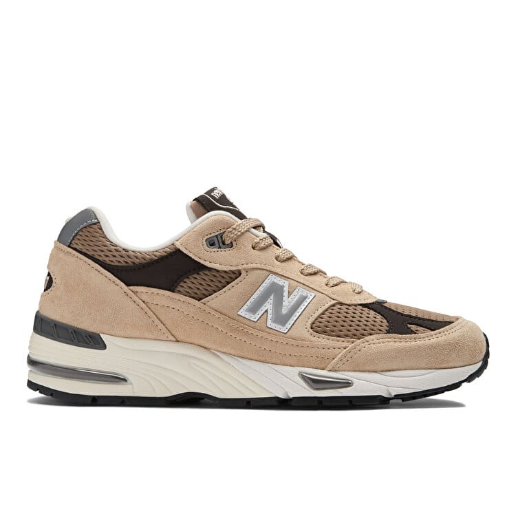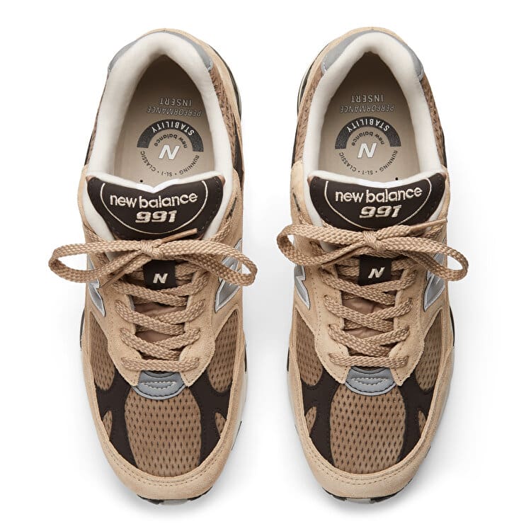 این طراحی انحصاری با مواد غنی و جزئیات ظریف، نماد اصلی MADE in UK 991 را جشن میگیرد. به عنوان لمسی مجلل در ساختار مشبک استاندارد، از نوبوک برجسته و سوراخ دار استفاده شده است که ظاهر طراحی کلاسیک رویه را تقلید می کند. روکش های جیر درجه یک با لهجه های مصنوعی متضاد جفت می شوند. MADE in UK 991v1 ‘Finale’ در دو رنگ، یکی قهوه ای تیره و دیگری قهوه ای روشن تر موجود است.