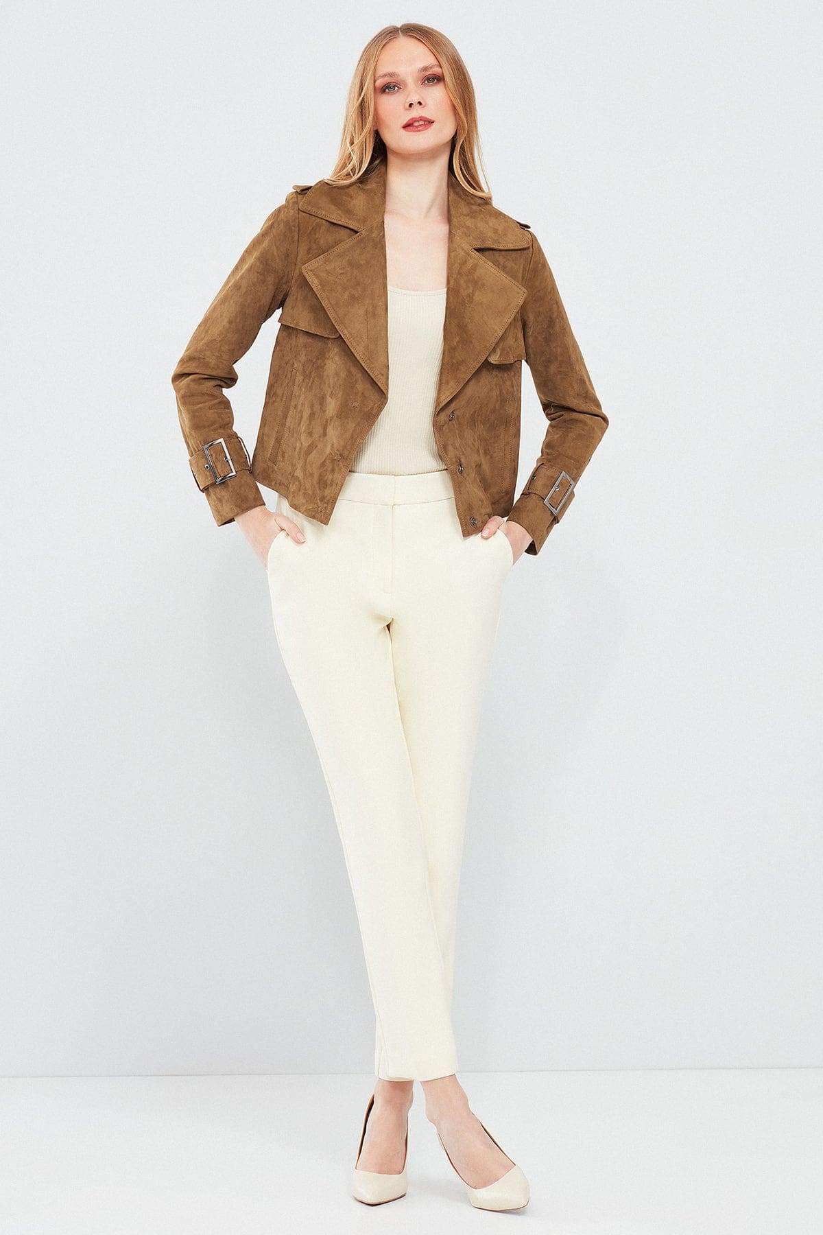 Portofino Kadın Hardal Süet Deri Ceket