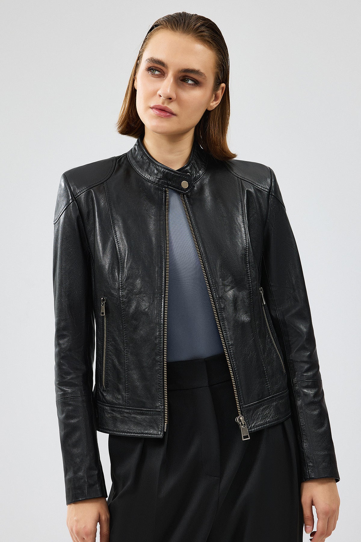 کت چرم کوتاه مشکی زنانه Prima دری مد