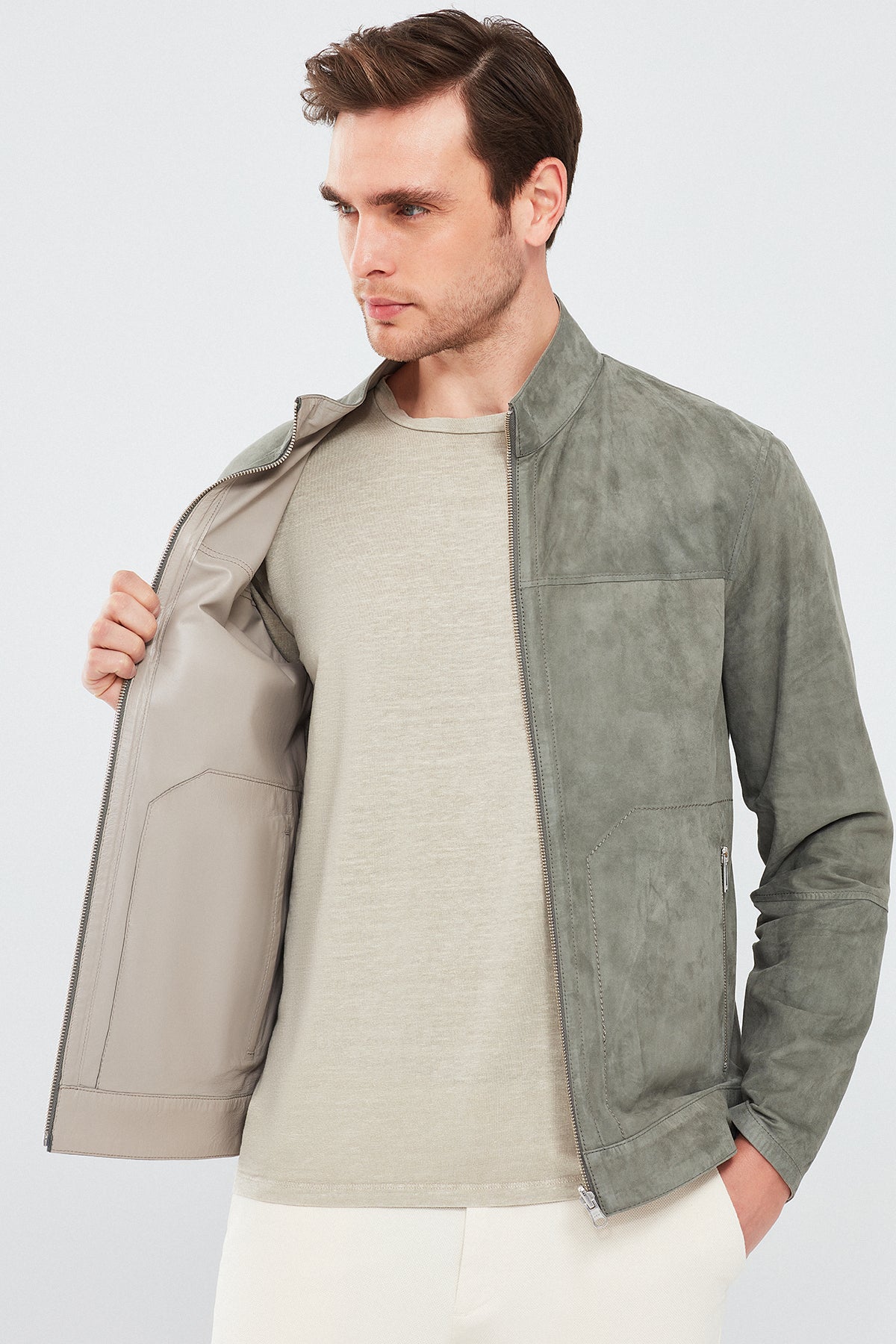Rakitic Erkek Yeşil Çift Taraflı Süet Deri Mont