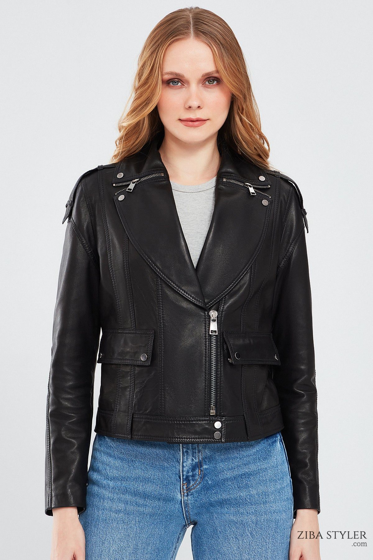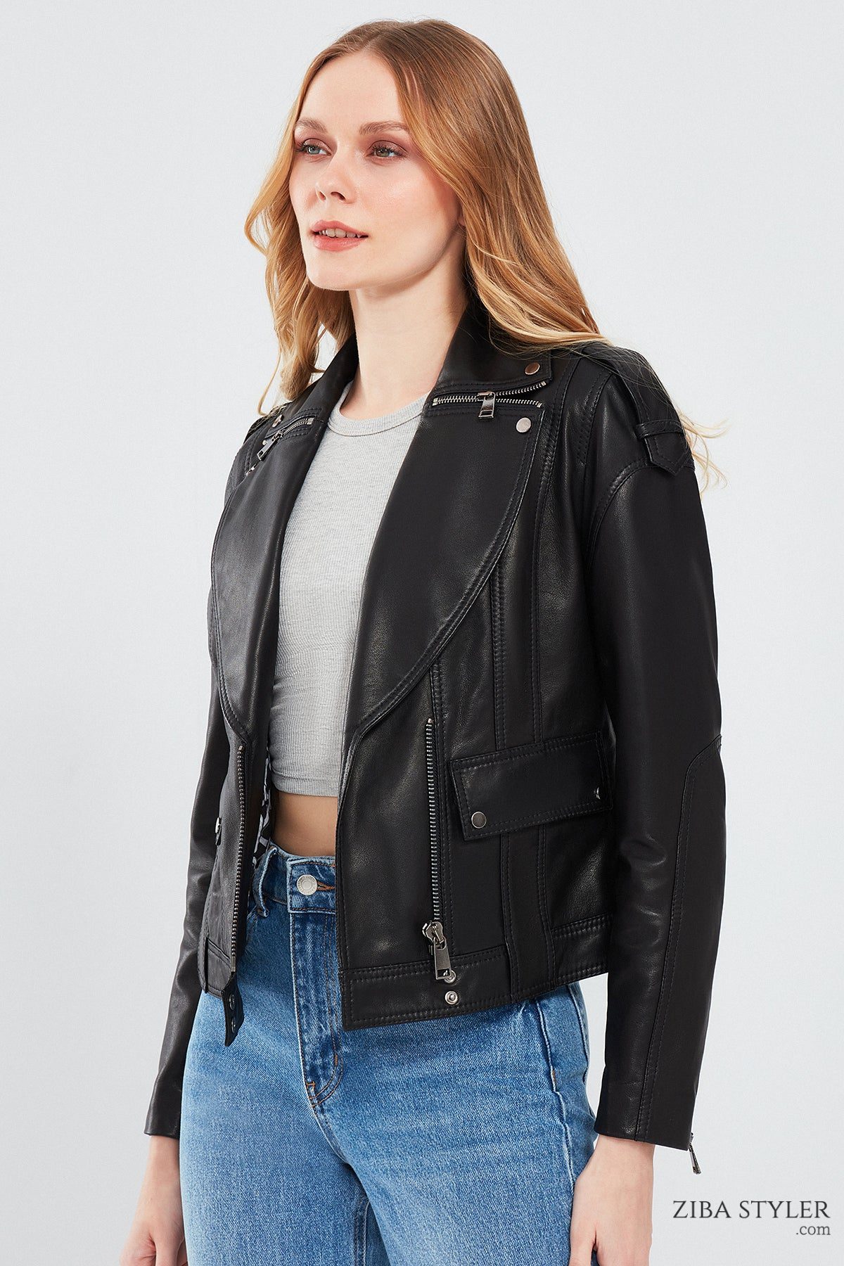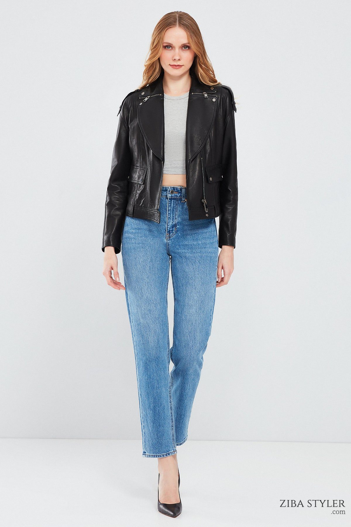 کاپشن چرم مشکی زنانه Reina دری مد